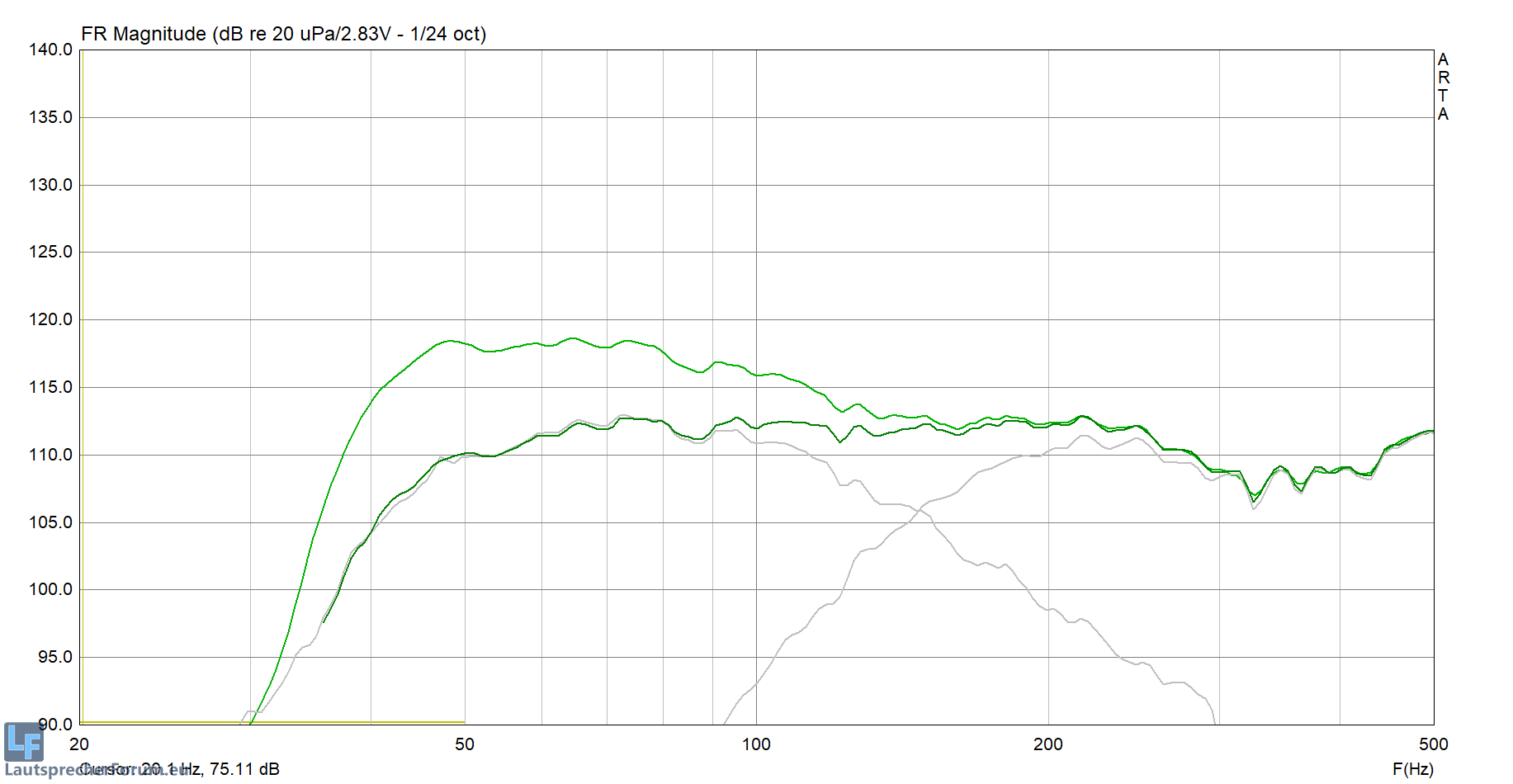 Die Messungen die ich dazu finde (oder Simus) haben alle einen Peak im Bereich 200Hz, LBH schon wesentlich früher,