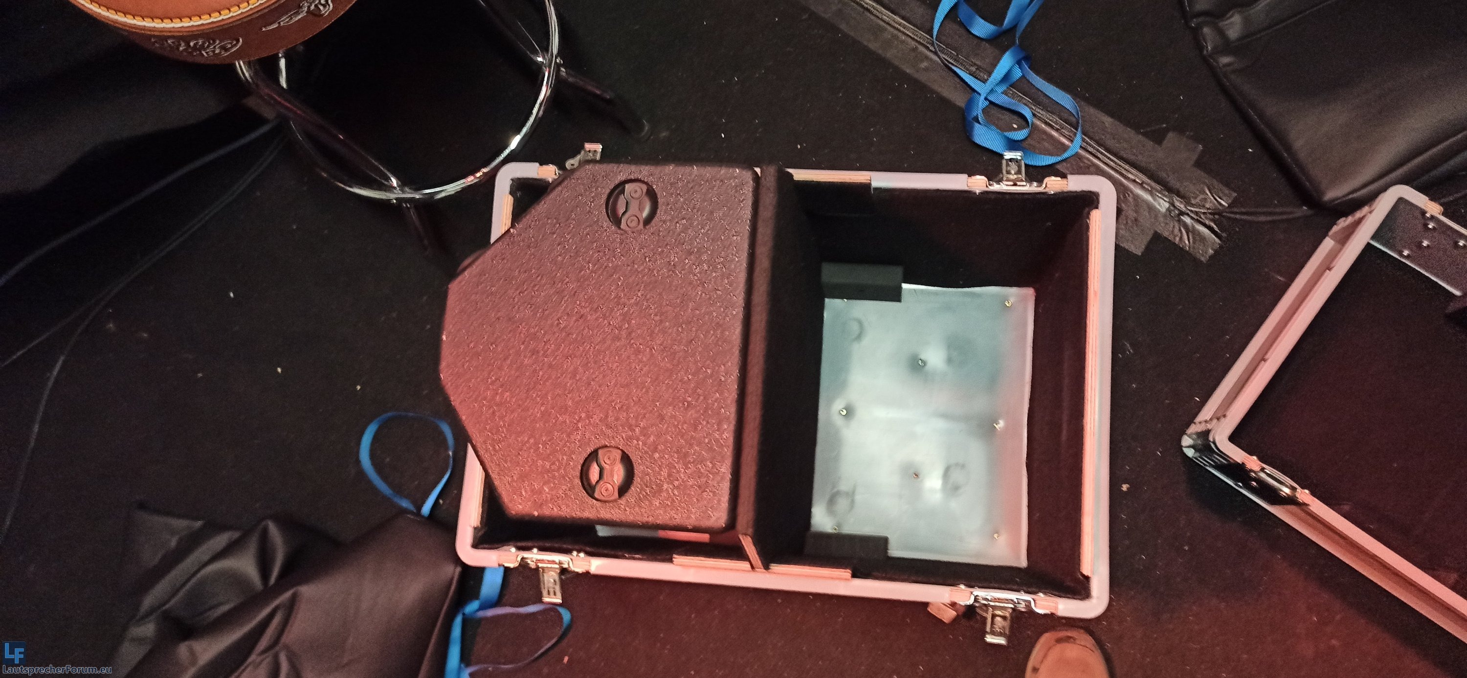 Im Endeffekt sind es zwei Kisten von Auer die mit Butterflys ausgestattet sind und mit etwas 9mm Siebdruckplatte verstärkt und ausgebaut wurden.