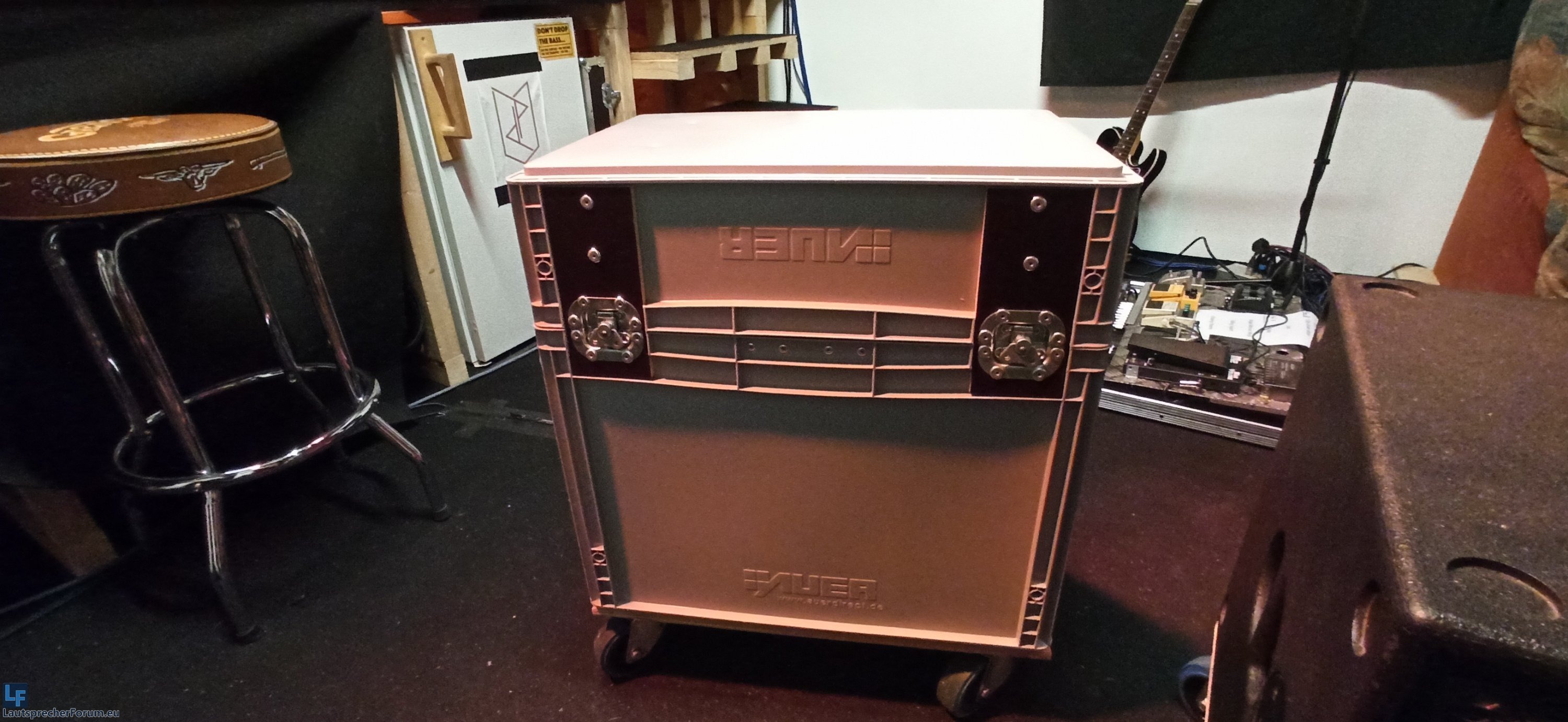 unten noch eine 15mm MPX Platte mit Rollen dran drunter und Fertig ist das Low Budget Case das zusätzlich leicht und trotzdem stabil ist. Da die Topteile genauso hoch sind wie der Innenraum der beiden Kisten kann man sich sogar drauf stellen ohne das was passiert.