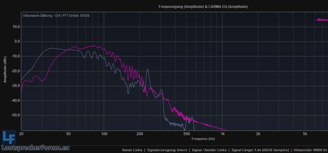 Die 8er sind BR. Da habe ich mich evtl. missverständlich ausgedrückt. Trennfrequenz des Sub liegt bei 80hz 18dB BW. Akustisch wird wohl irgendwo zwischen 100 und 110 hz getrennt. Ich habe es noch nicht im Freien vermessen.