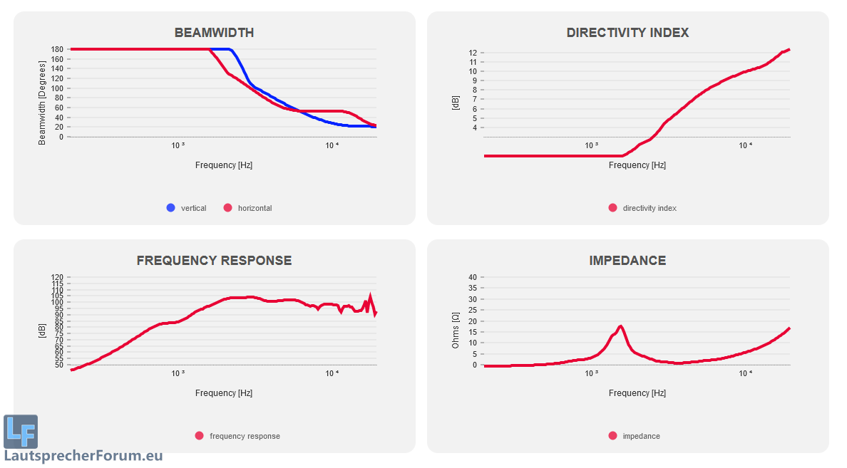 Hier ein vergleich mit der zu ersetzenden Horn / Treiber Kombi (angegeben mit 120°/30°, was für meine Anwendung in beiden Achsen leider nicht passend ist).