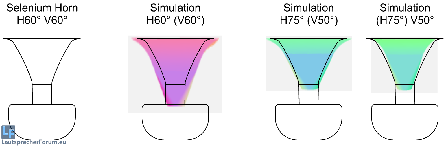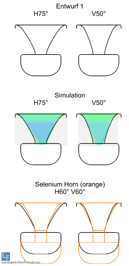 Und die Simulation mit 75° / 50° kommt mit der kürzeren Hornlänge im Gehäuse gut hin.