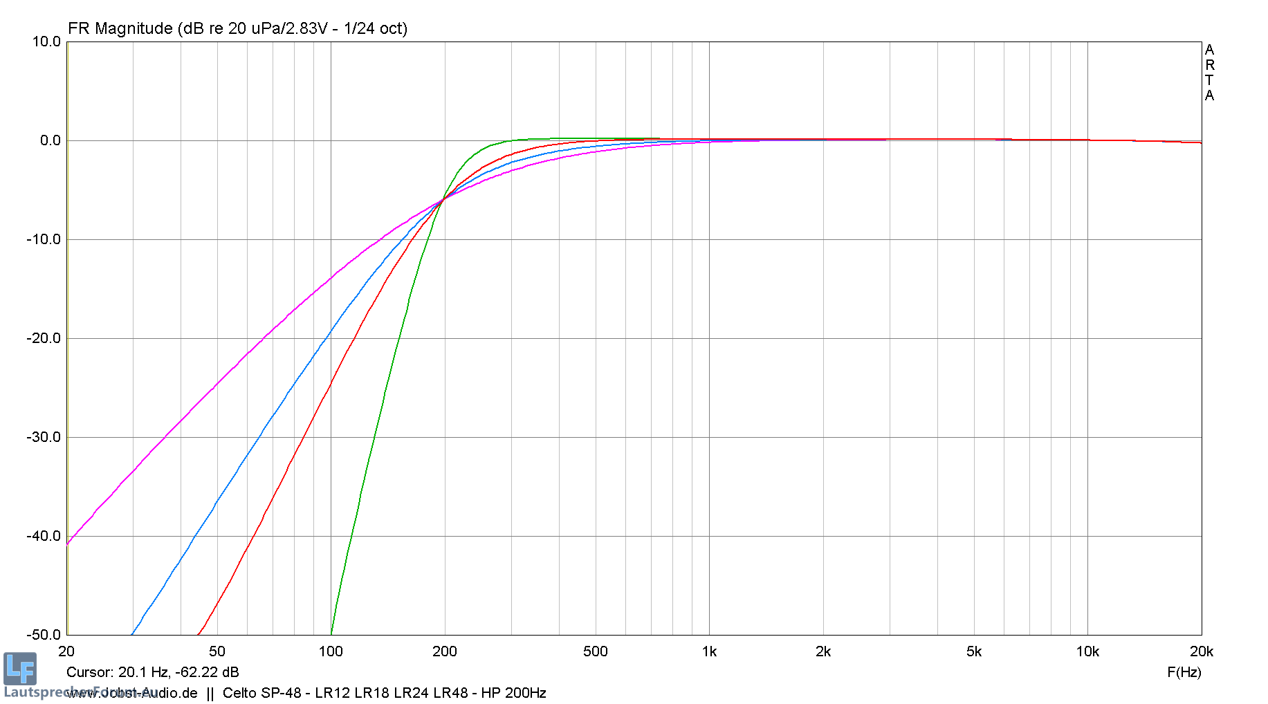 Filter HP + TP: 21Hz - 19999Hz - Datenblatt: HP 10Hz-16kHz / LP 60Hz-22kHz