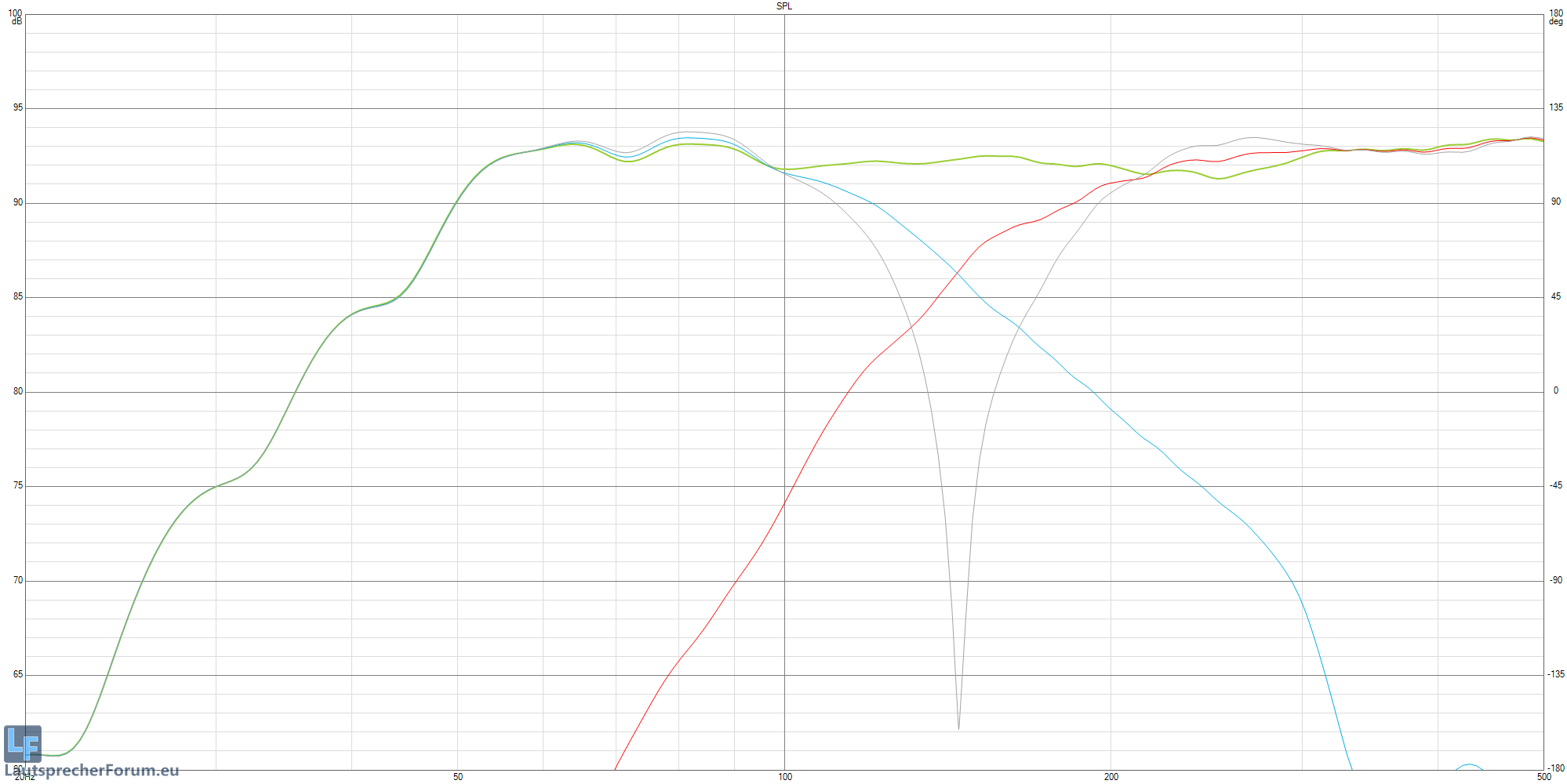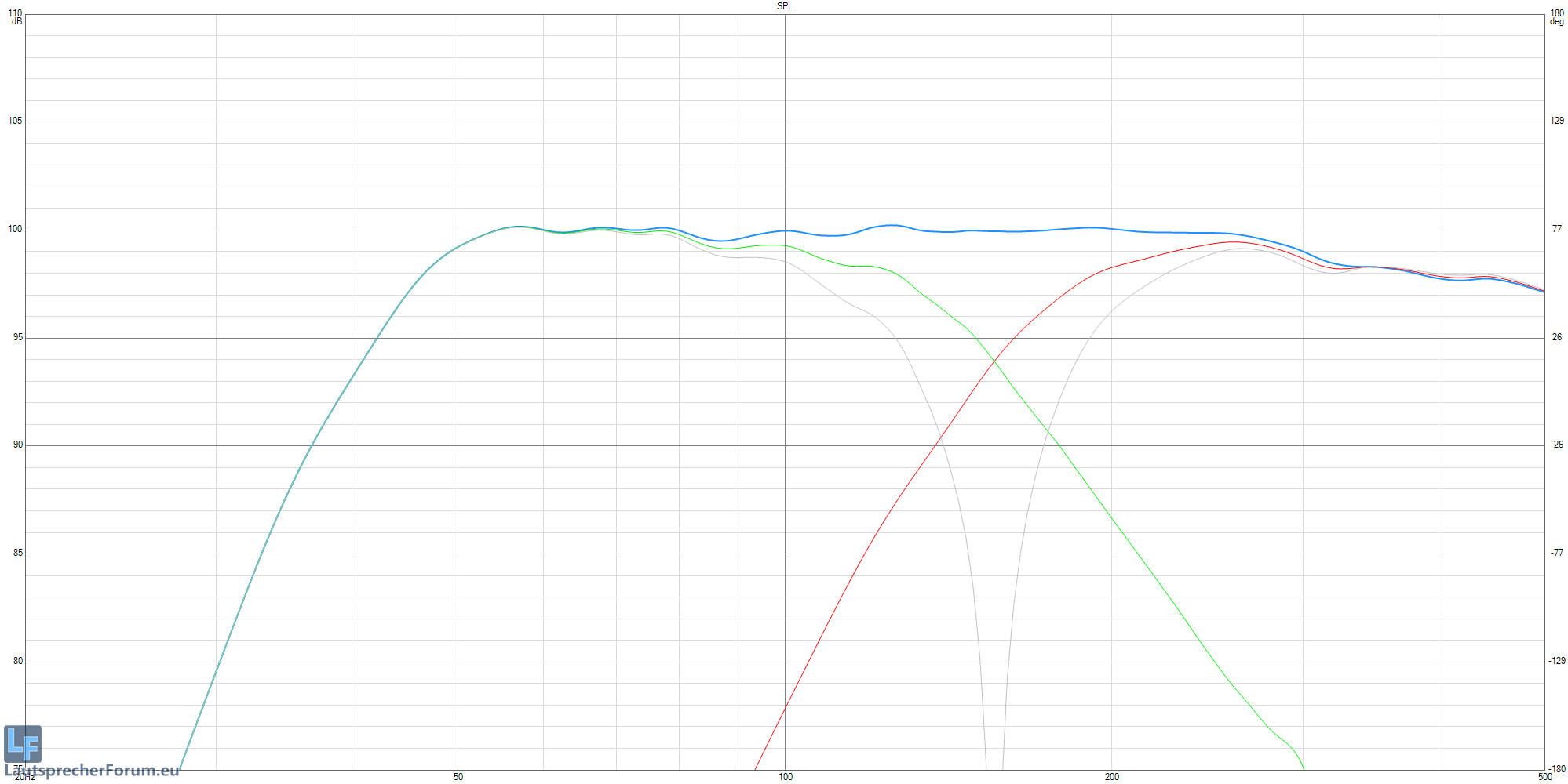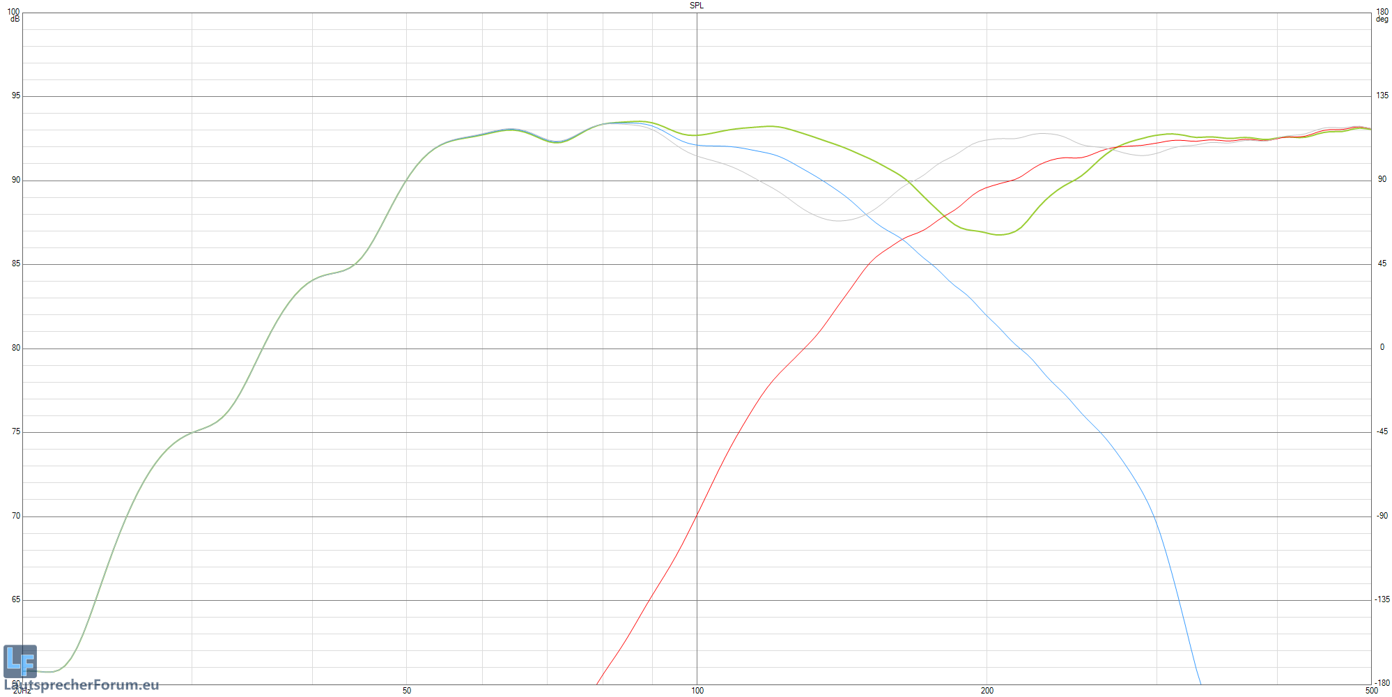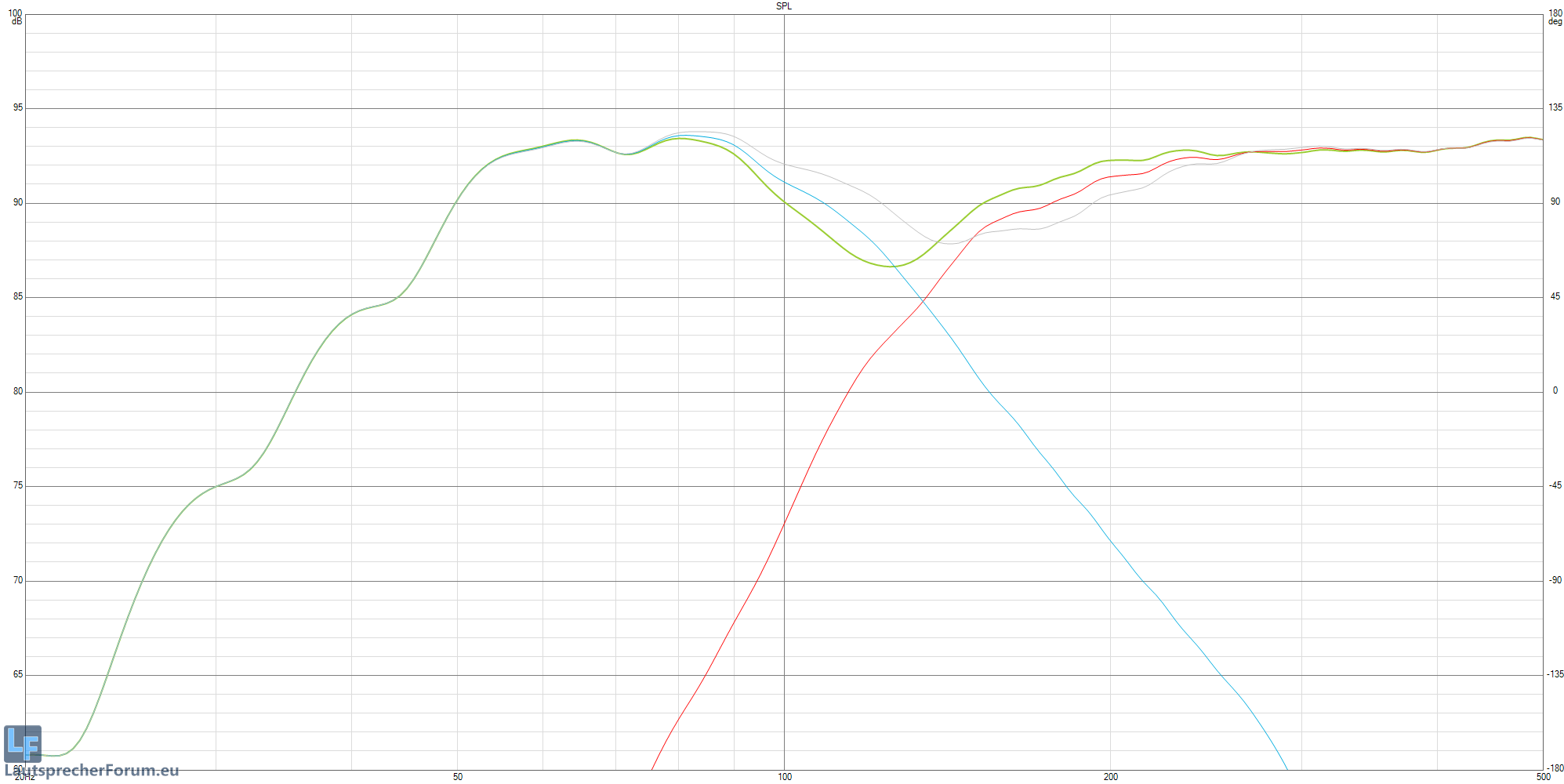 elektrisch wurde hier dem Bass ein Tiefpass von 136 Hz und dem Topteil von 170 Hz gegeben.