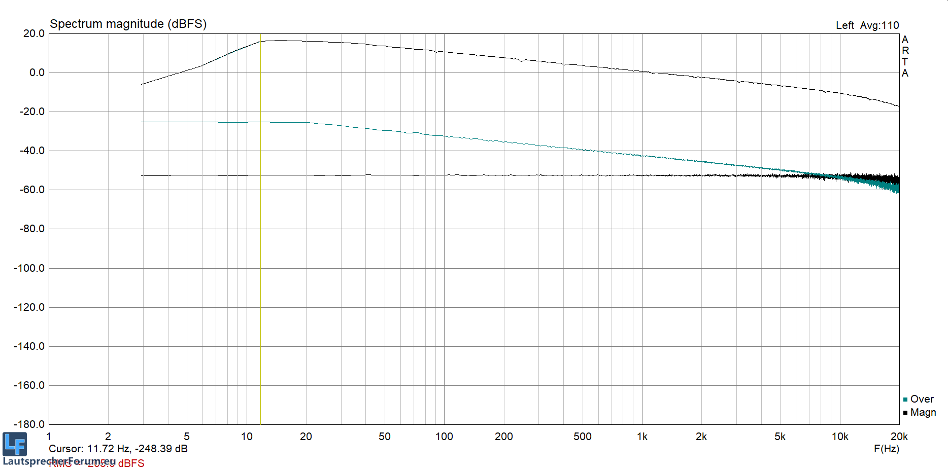 Meinst du nun den Pegel oder den Frequenzbereich? Pegel sollte eigentlich passen. Ich hatte einen Rauschabstand von knapp 40 db und ordentlich Pegel am HT. Der Eingang vom Mikrofon war hierbei fast am Clipen. Der TT ist mit gleichem Pegel vermessen worden, um hier bereits das korrekte Verhältnis zu haben. Anfangs habe ich mit dem Ausgang des Behringer-Interfaces gemessen. hiermit war aber der Rausabstand zu gering, weswegen ich auf den Verstärker umgezogen bin. Ab dem Zeitpunkt würde ich sagen, dass ich ordentlich Pegel beim Messen hatte.