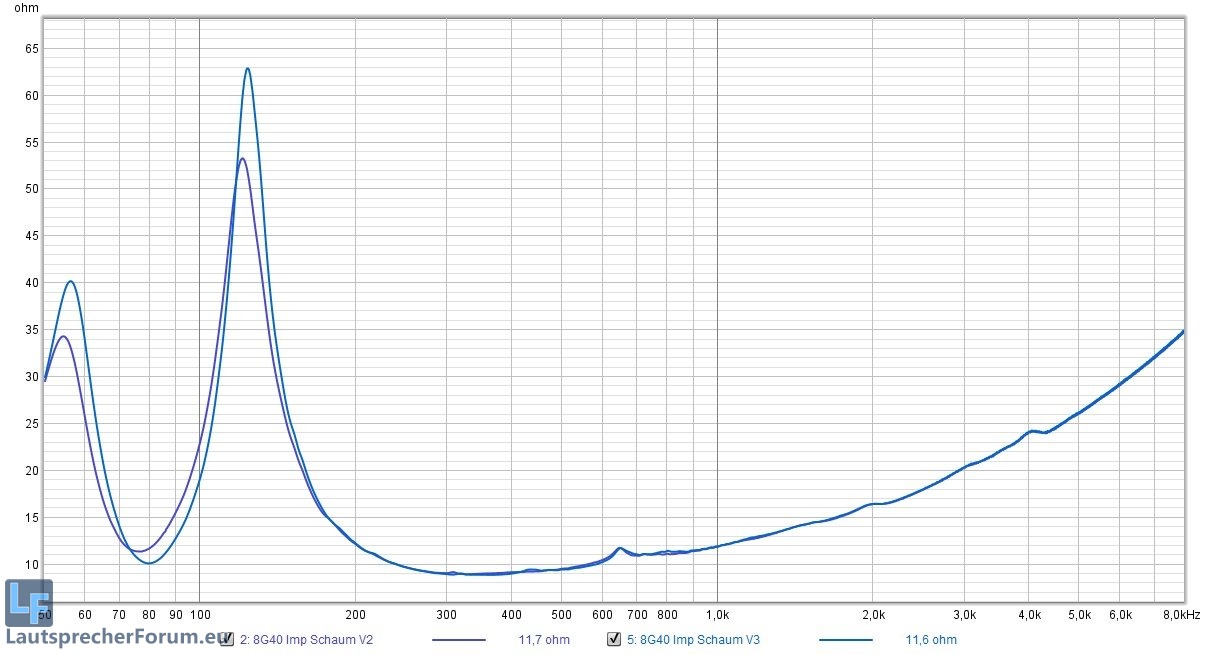 Wenn alles gut läuft, schaff ich am Sonntag ein paar Messungen. Da werde ich wie von @Azrael vorgeschlagen, die Impedanz über die geatmeten 20kHz messen werde. Vielleicht finde ich auch endlich mal den Grund für die Überhöhung beim 8G40 😅