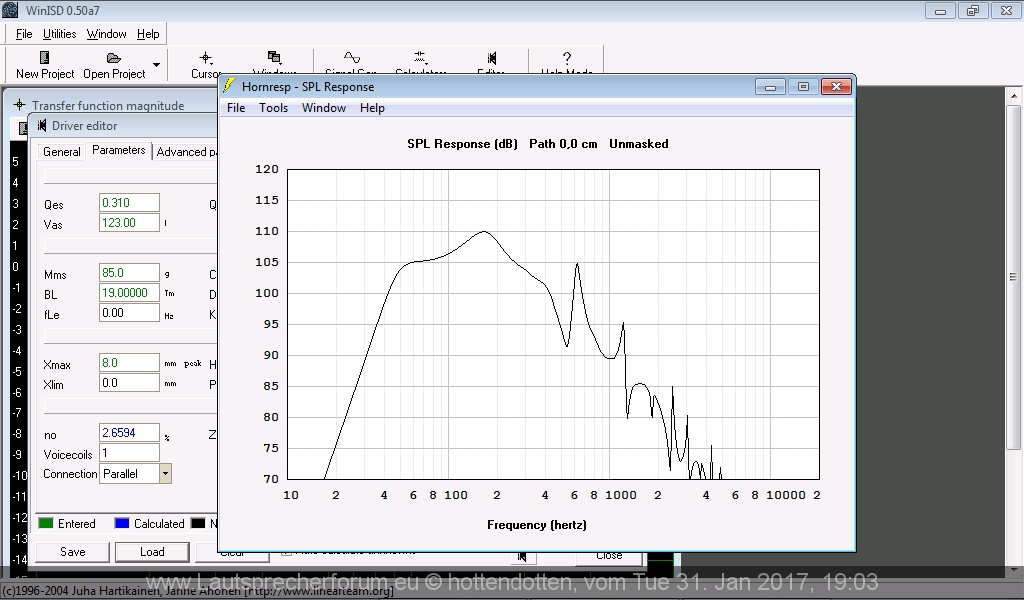 Müsste man nur die tatsächliche Tuningfrequenz ( 42-43Hz laut Jobst Messung ) und das Nettovolumen der Original Kiste ermitteln.