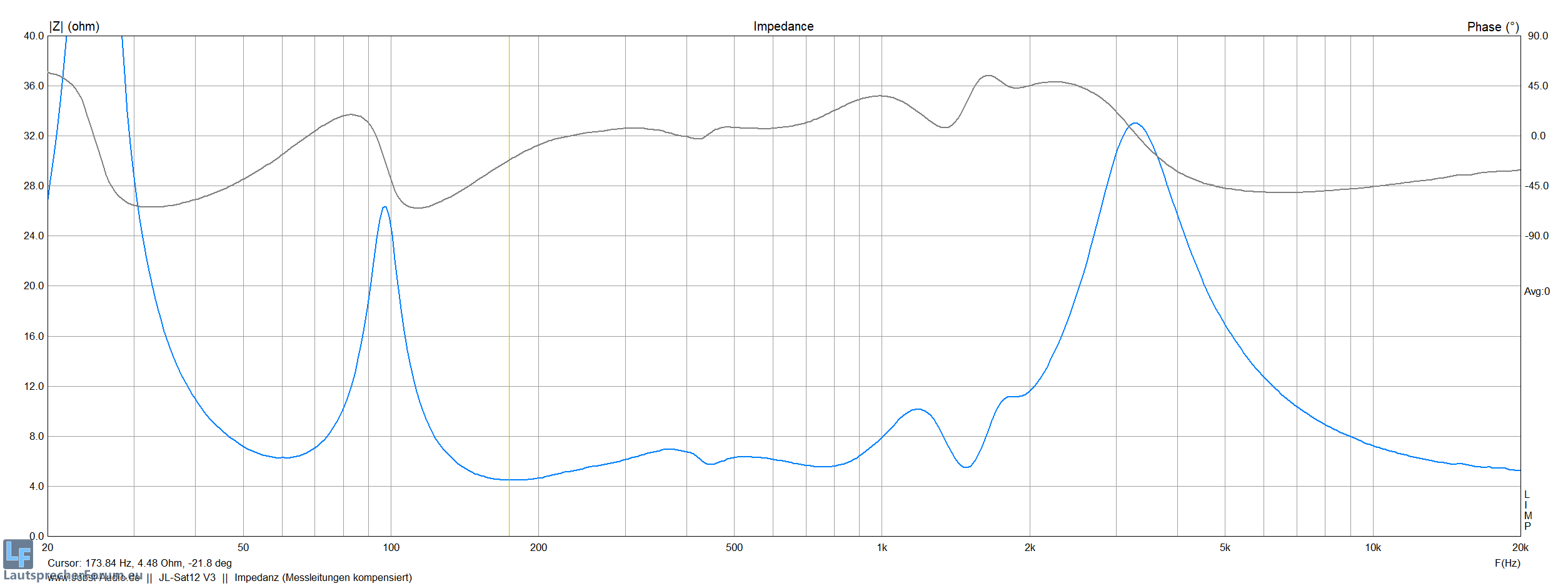 Im Bereich unter 5,5 Ohm befinden wir uns nur zwischen 145-250Hz, darüber sind wir im Bereich 5,6 Ohm (Nominell 7 Ohm).