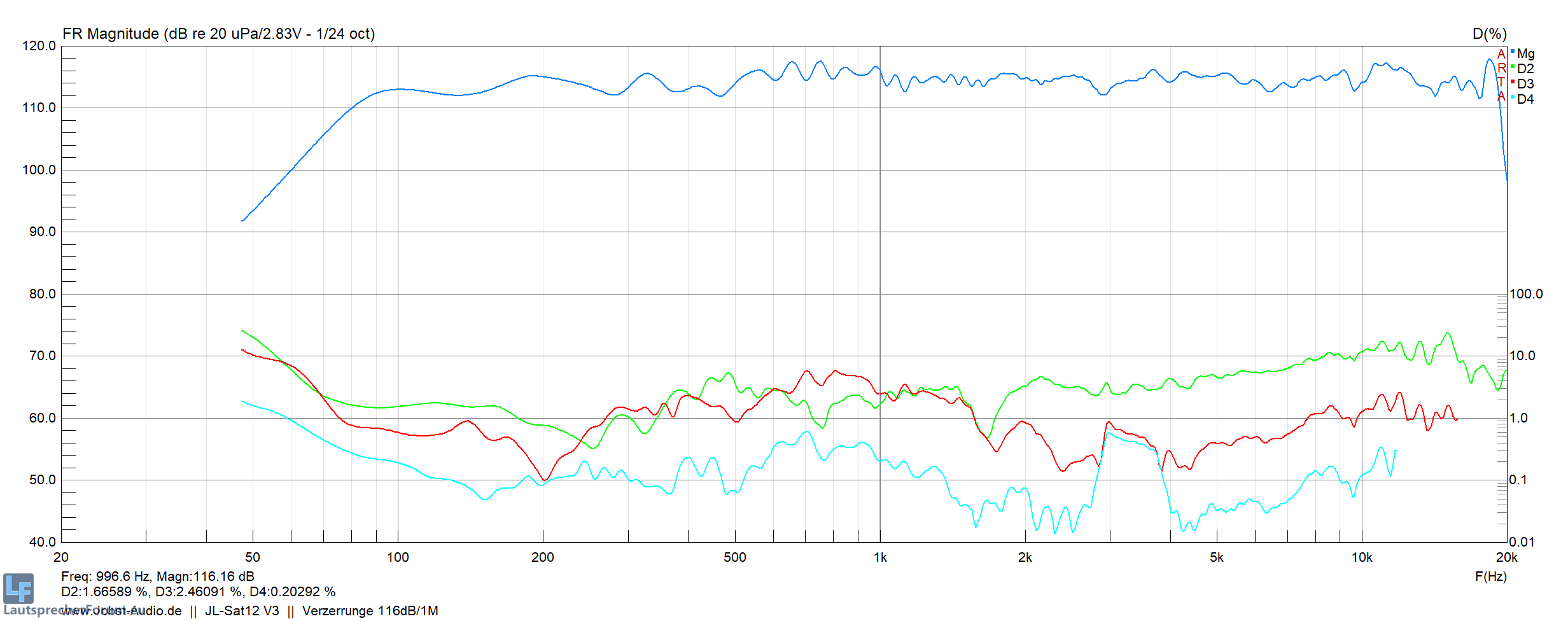 K3 Verzerrungen:Durchschnittlich 5% @ 122dB (Peaks 7-8%)
