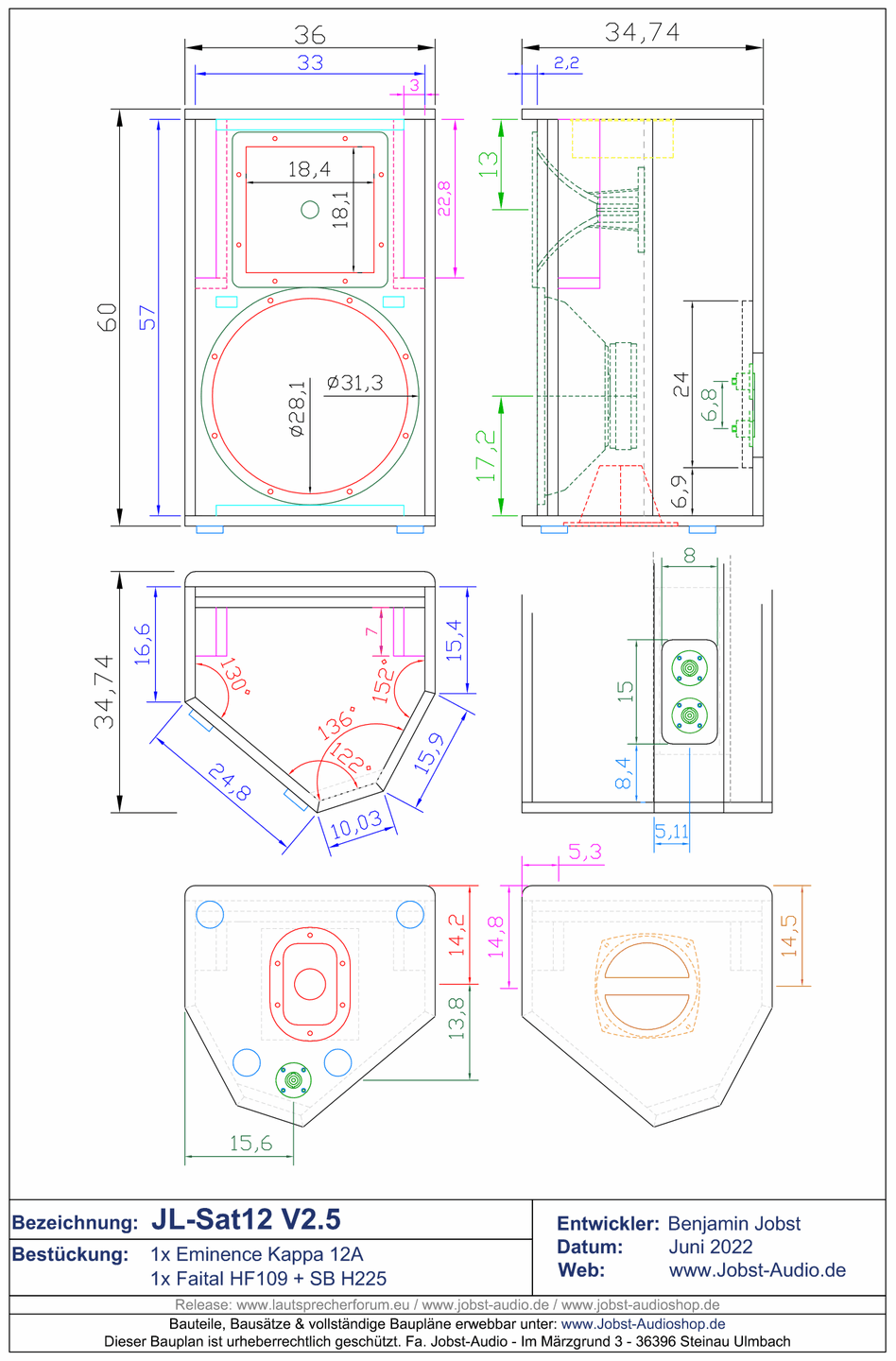 JL-Sat12 V3 - Update von V2.5 auf neuen Tieftöner, wahrscheinlich Faital 12FH510 (Geplant fertig gegen Ende August 2022)