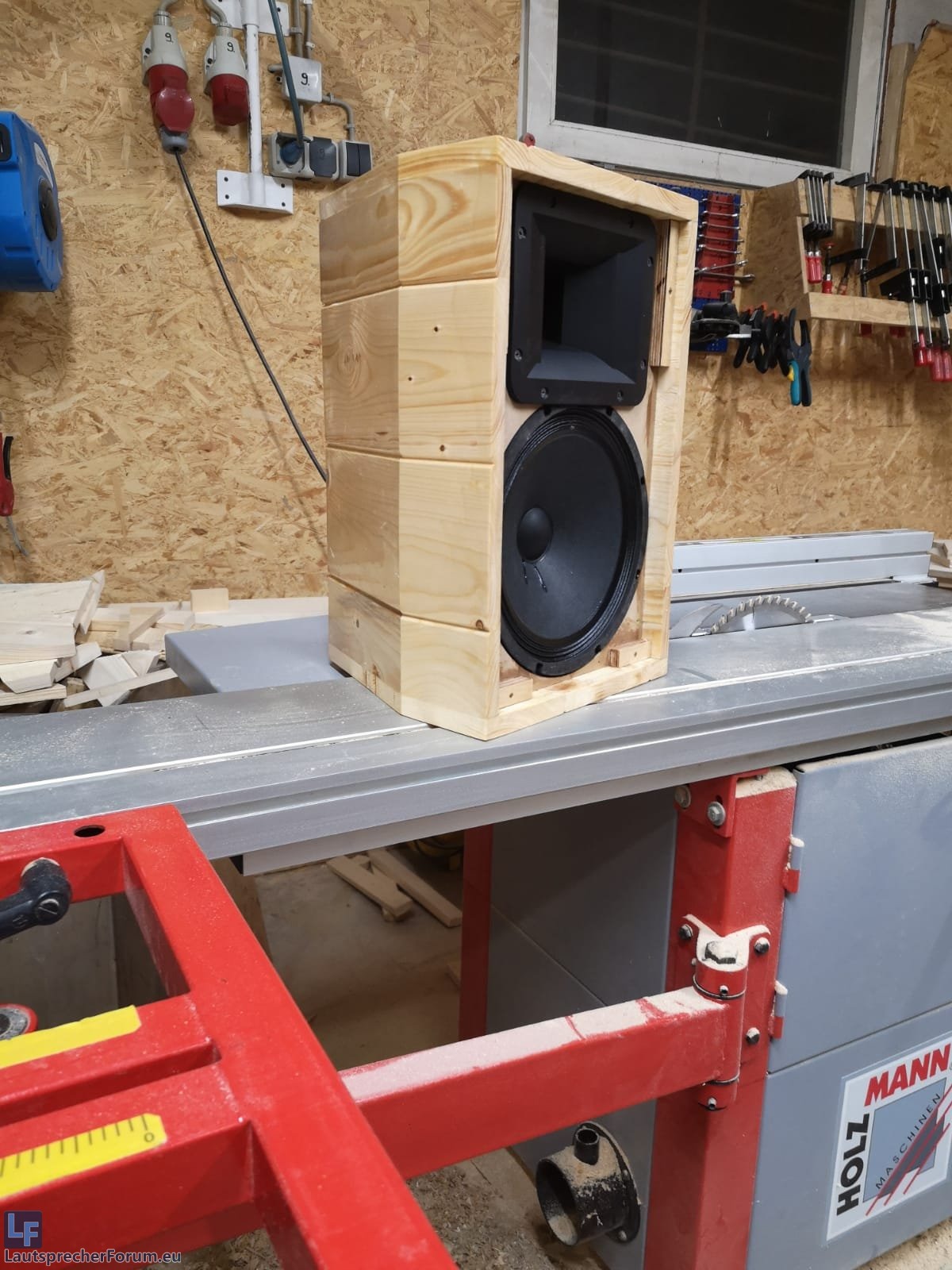 Ich habe hier den Zuschnitt der LF-Sat 15 in Pappel-MPX 15mm liegen, nur die Schallwandwand ist aus Birken-MPX.