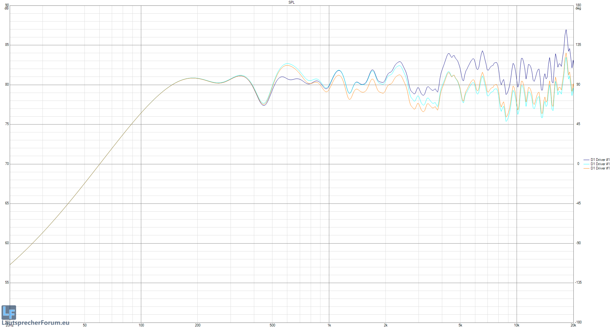 (Möglicher Weise trägt der Impedanzanstieg in den oberen Mitten in Wechselwirkung mit dem Tiefpassfilter der Class-D-Endstufe negativ zum Klang bei...?)