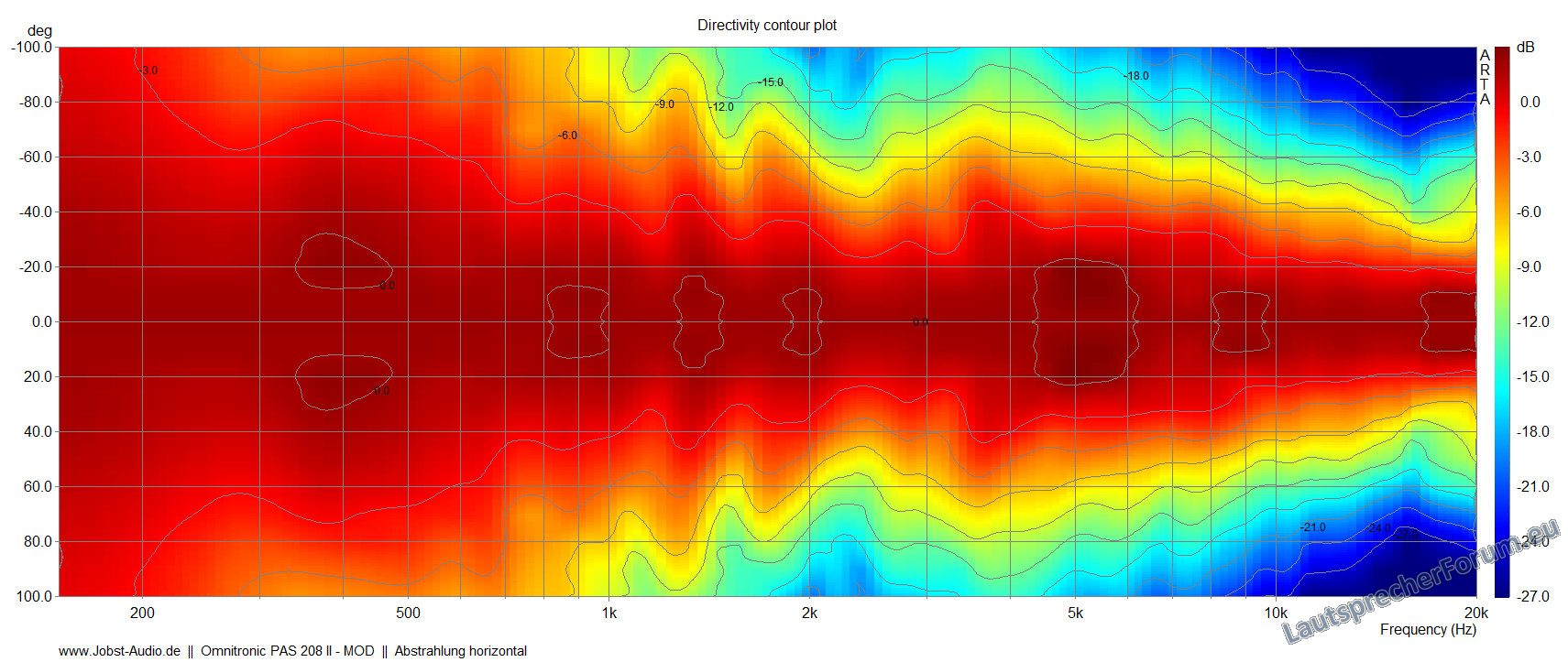 Die Abstrahlung ist ganz ok geworden mit durchschnittlich 90° bis 10kHz, darüber wird's typischerweise enger bis zu 55° @ 20kHz.