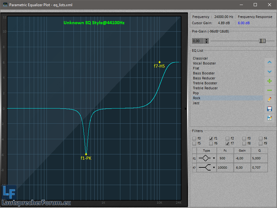 - EQ einschalten und den dB entsprechend die Leistung anpassen, da WINISD diese einfach mit oben drauf rechnet.