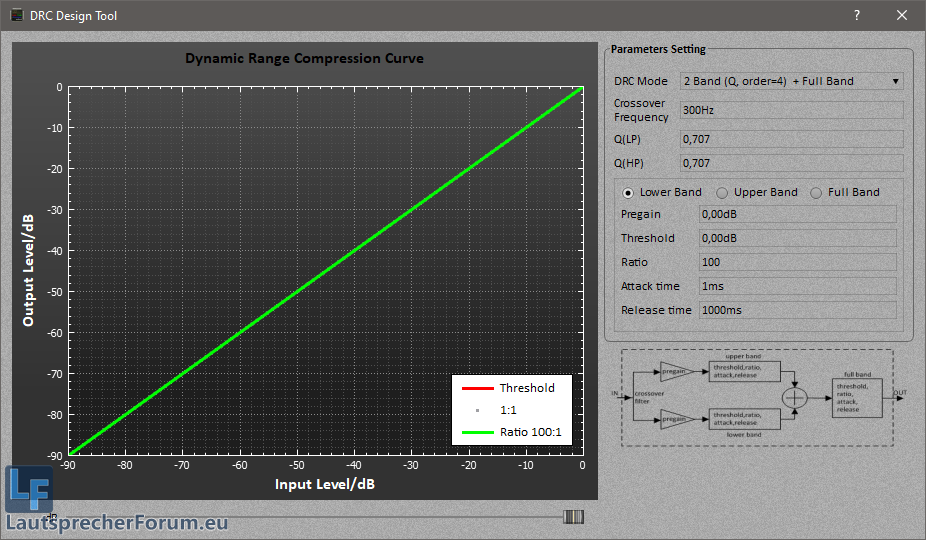 - EQ einschalten und den dB entsprechend die Leistung anpassen, da WINISD diese einfach mit oben drauf rechnet.