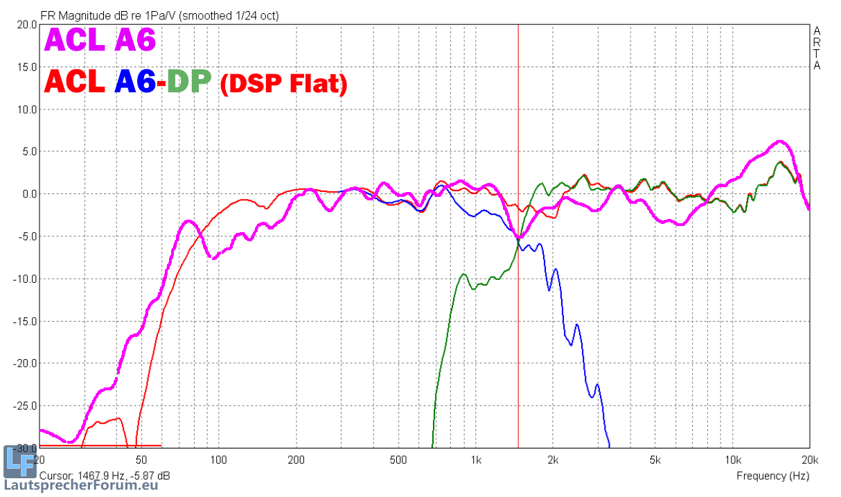 Seeburg A6-DP inkl. "flat" DSP mit Einzelwegen, versus A6 (passiv).