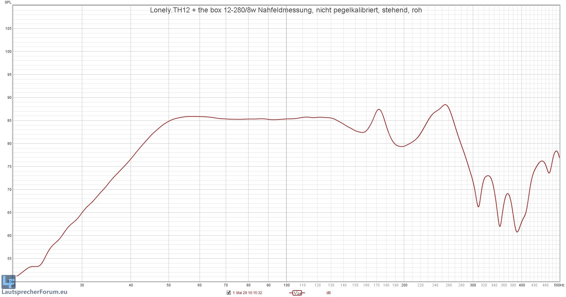 Hier sind meine unkalibrierte Nahfeldmessungen vom Lonely.TH12 mit dem the box 12-280/8W, die ich mit UMIK-1 in REW generiert habe.