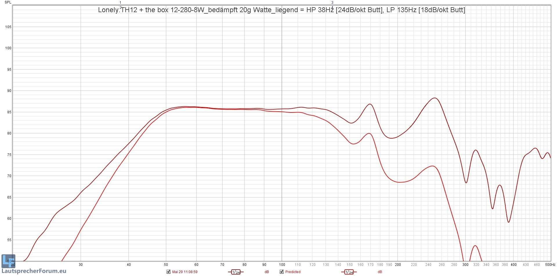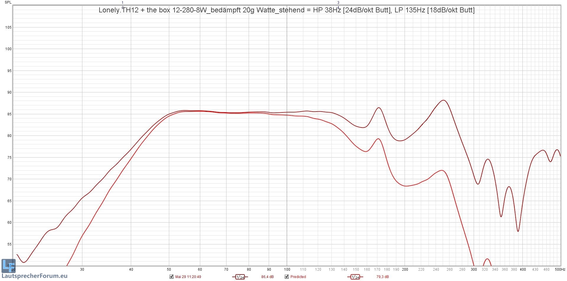 _ ca. 10Hz tiefere Abstimmung als MTH-30 (Fb MTH-30 = 55Hz, Fb Lonely.TH12 = 45Hz) bei geringfügig verminderten Wirkungsgrad
