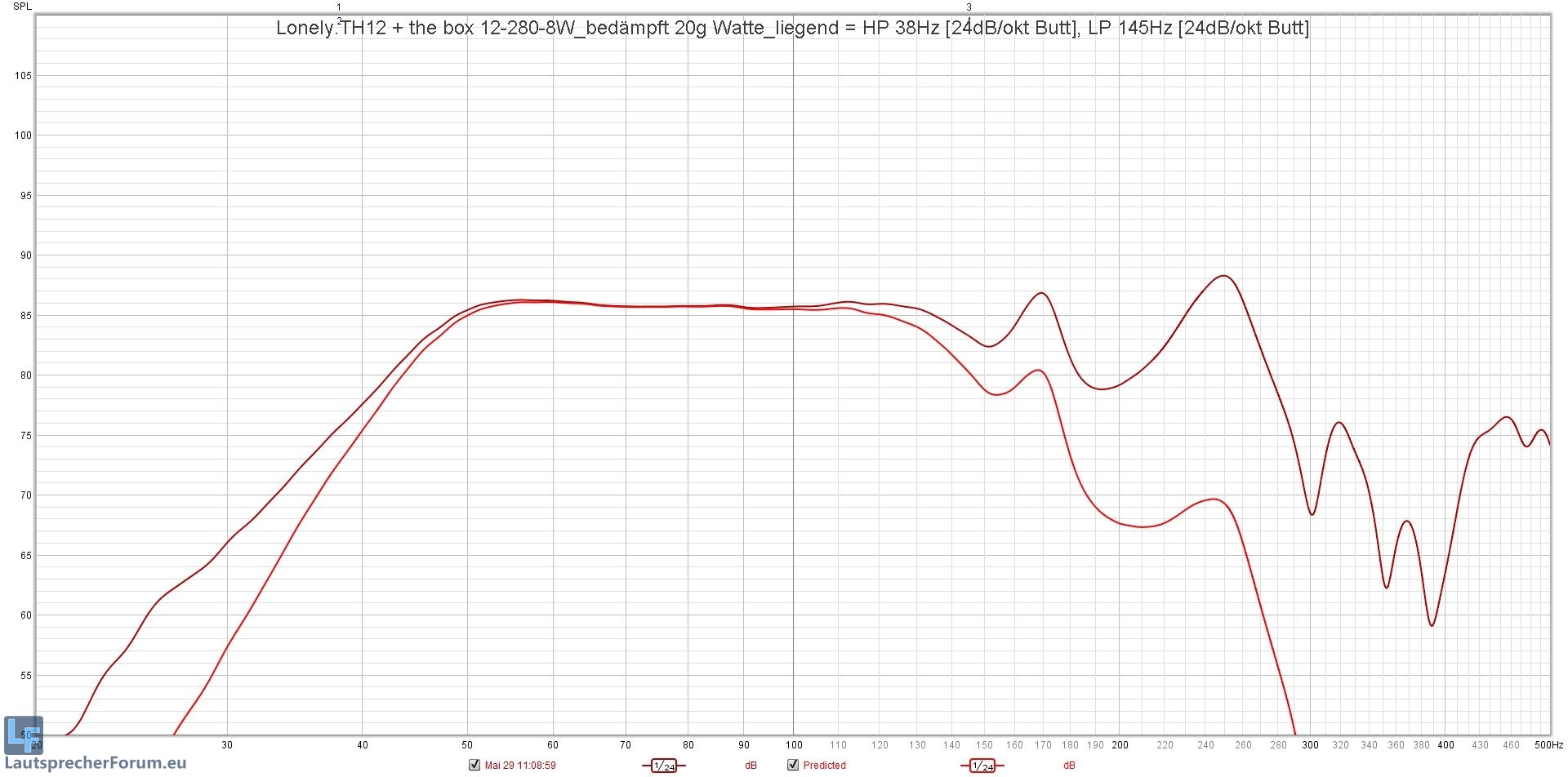 Und obwohl die Hornresp-simulation dazu ziemlich besch.....eiden aussieht, es dafür keine Messung im ganzen Internet existiert und der 12-280/8W nur eine ULB-Notlösung war, bauen die Leute diese Kombi wie verrückt. :rolleye:
