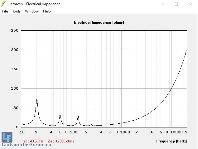 elektrische Impedanz = Fb 43,63Hz (bei 2.0 x pi Halbraum)