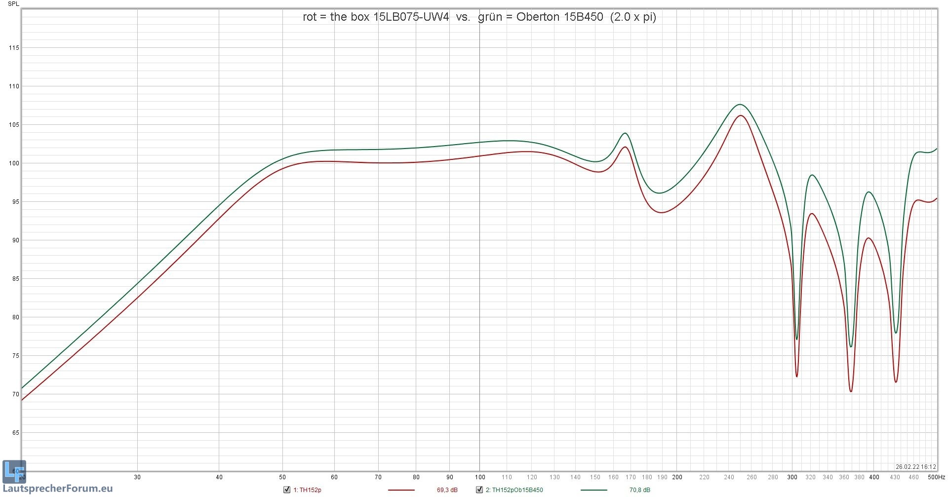 rot = the box 15LB075-UW4 vs. grün = Oberton 15B450 (2.0 x pi)