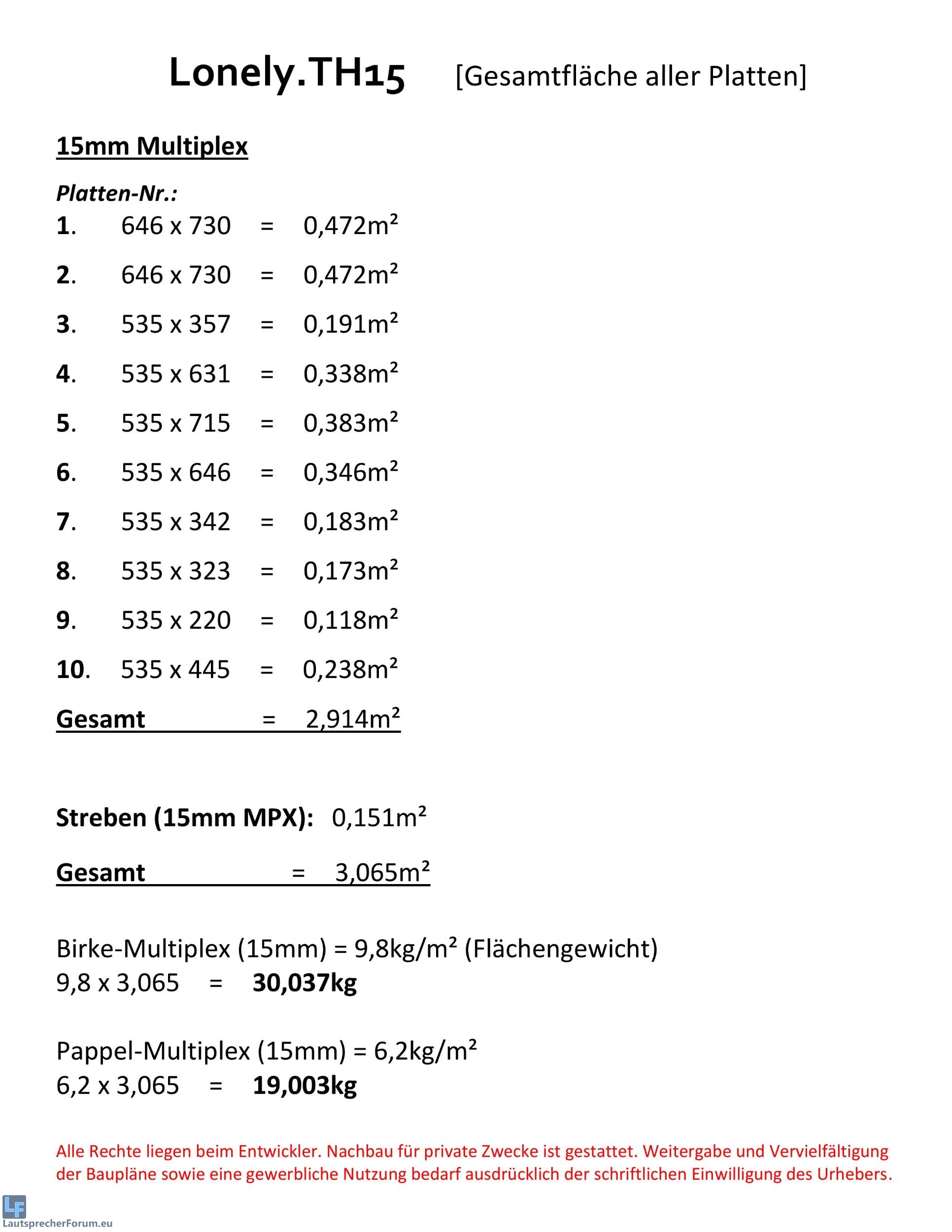Da auch großes Interesse seitens der Öffentlichkeit besteht zu erfahren, wie schwer das Lonely.TH15 letztendlich ist, habe ich im gleichen Zuge auch das Gesamtgewicht für das Holz ausgerechnet und werde einfachheitshalber hier posten.