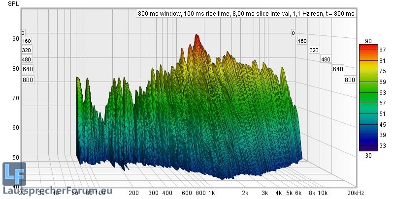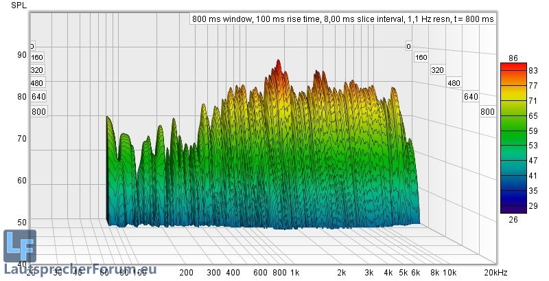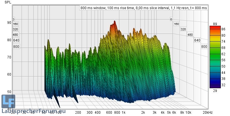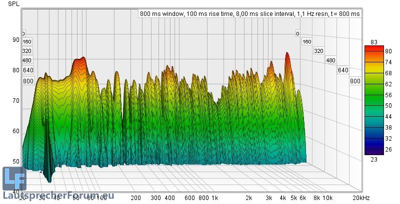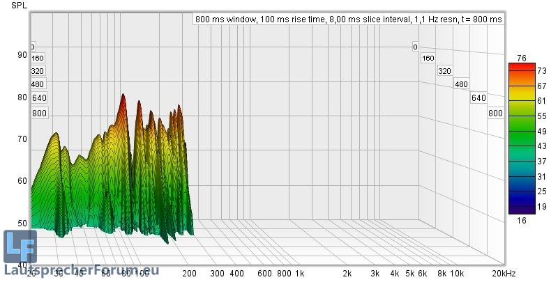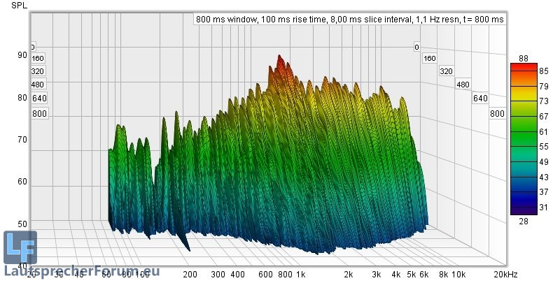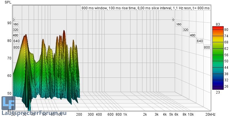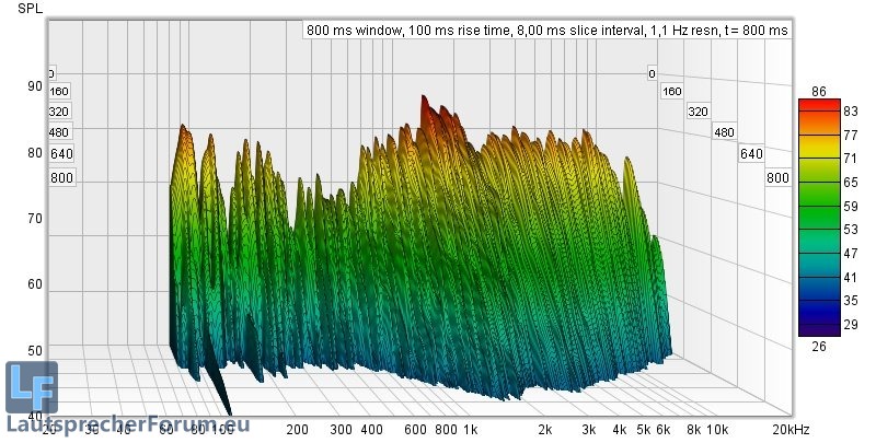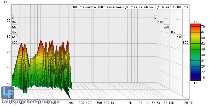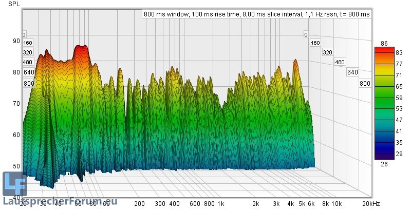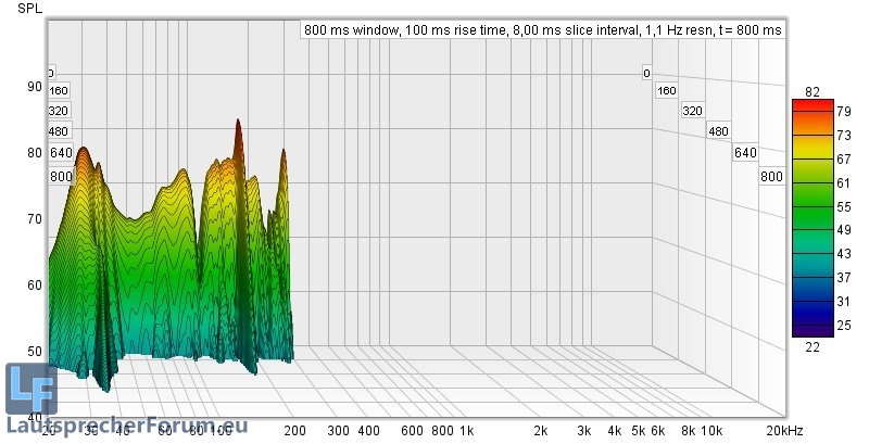 Hier ist zu sehen dass Moden recht gering ausgeprägt sind, lediglich die Nachhallzeiten versauen die Freude am ernsthaften Musikhören deutlich.