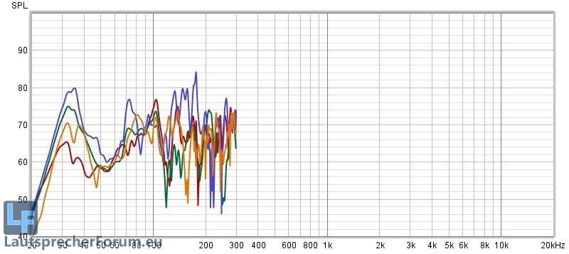 Um die Thematik besser einschätzen zu können habe ich am Wochenende von jeder Box eine Rohmessung (ohne EQ & Filter) an vielen Messpunkten vorgenommen und an vier relevanten Messpunkten dokumentiert.