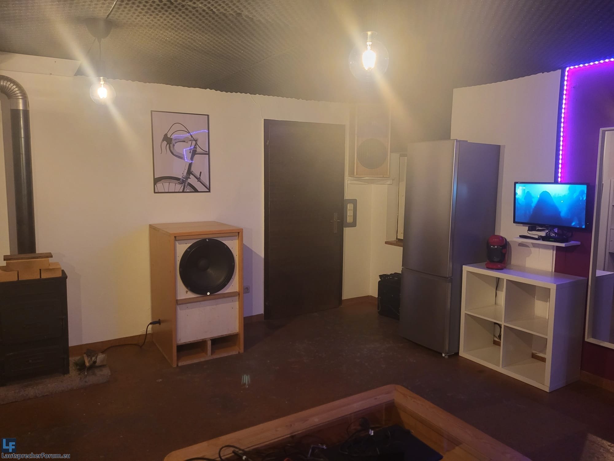Ich bin in der komfortablen Situation einen separaten Komplex mit Partyraum, Schlagzeugraun, Sauna und Dusche/WC zu besitzen. Im November 2022 habe ich den Partyraum etwas umgestaltet und in diesem Zusammenhang begonnen eine Anlage für diesen zu bauen.