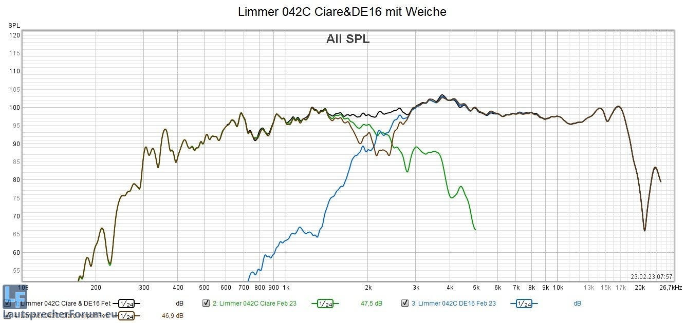 Die Messungen sind jeweils mit und ohne Weiche gemacht, der Pegel zeigt halt irgendwas an (nicht kalibriert).