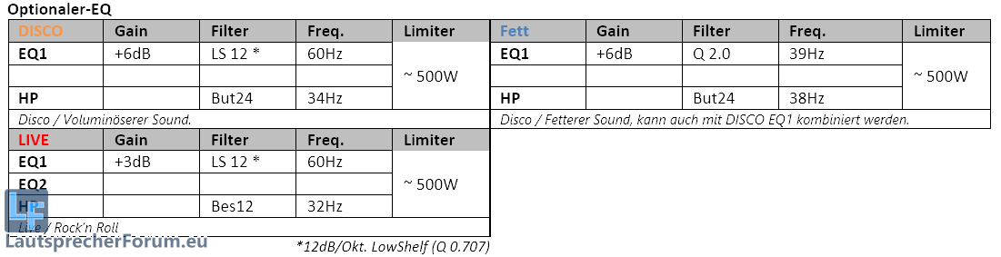 Laut Theorie holt man mit Kappalite (nach Xmax+10% her) gute 12-13dB gegenüber dem Thomann raus, heißt gut 4x lauter,