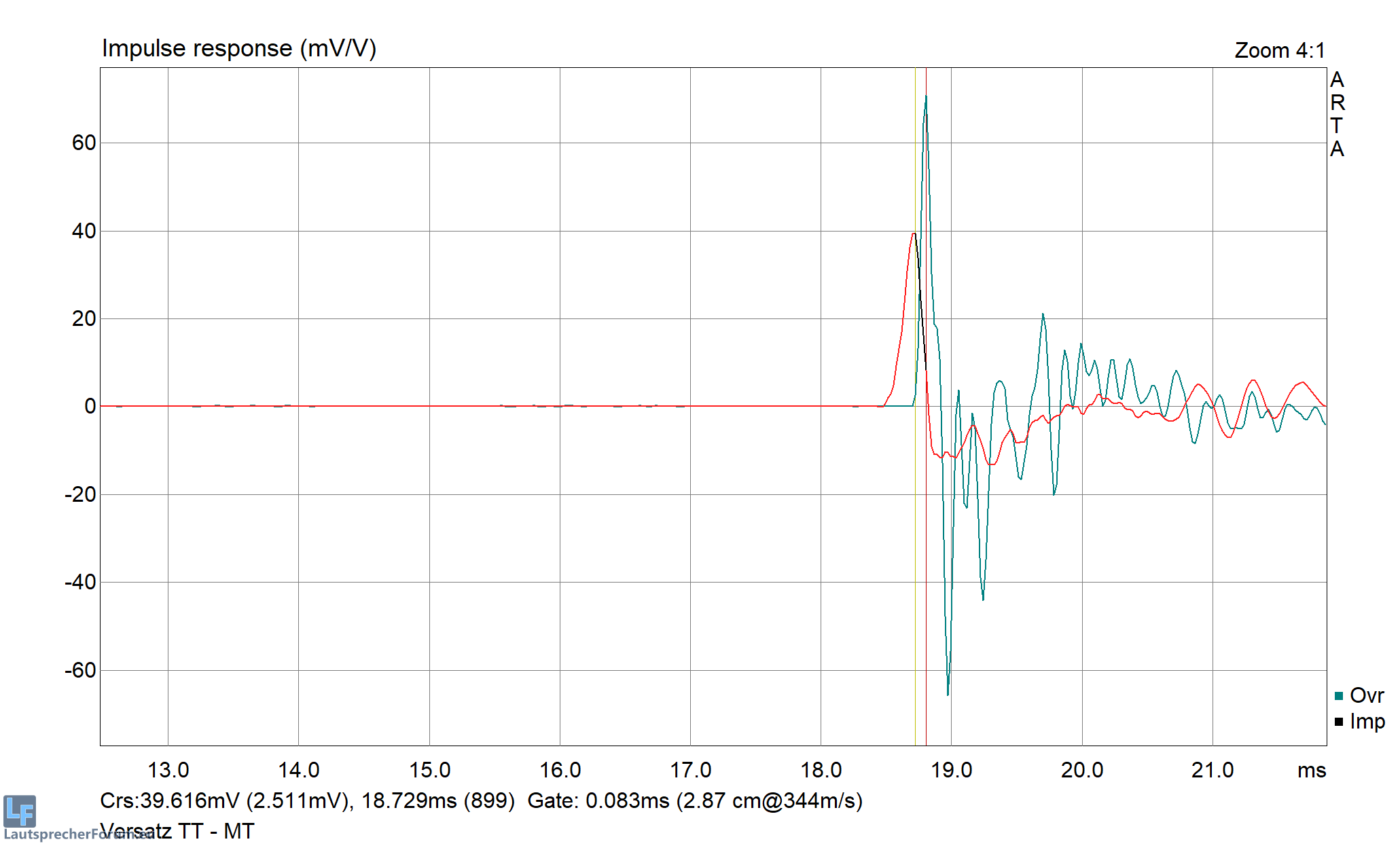 Etwas unschön - nicht nur in der Darstellung - zeigen sich diese Messungen - hier zu sehen sind eine GPM des TT, wie auch Nahfeld und BR Port, dazu unterlegt ist der Impedanzgang.