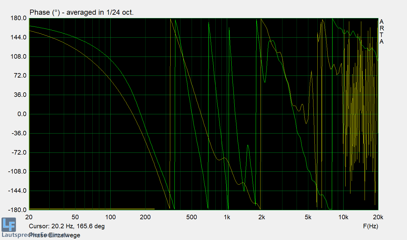 Man sieht bereits in den Rohmessungen der Phase, dass diese über 3khz "zickig" wird und keinen gleichmäßigen Verlauf mehr hat. Das erfordert ebenfalls eine Erhöhung der Filtersteilheit, damit man das in einem angemessenen Bereich übereinander bekommt.