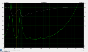 Etwas unschön - nicht nur in der Darstellung - zeigen sich diese Messungen - hier zu sehen sind eine GPM des TT, wie auch Nahfeld und BR Port, dazu unterlegt ist der Impedanzgang.