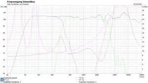 Weiter optimiert ist die Weiche nicht, eventl. kriegt man den F-Gang noch etwas schöner, spielt aber eigentlich keine allzu große Rolle, da das ja der DSP ohne großen Aufwand macht. Beim TT sind schon ein paar parametrische EQs drin, um ein Gefühl für die Auswirkungen auf die Phase zu bekommen.