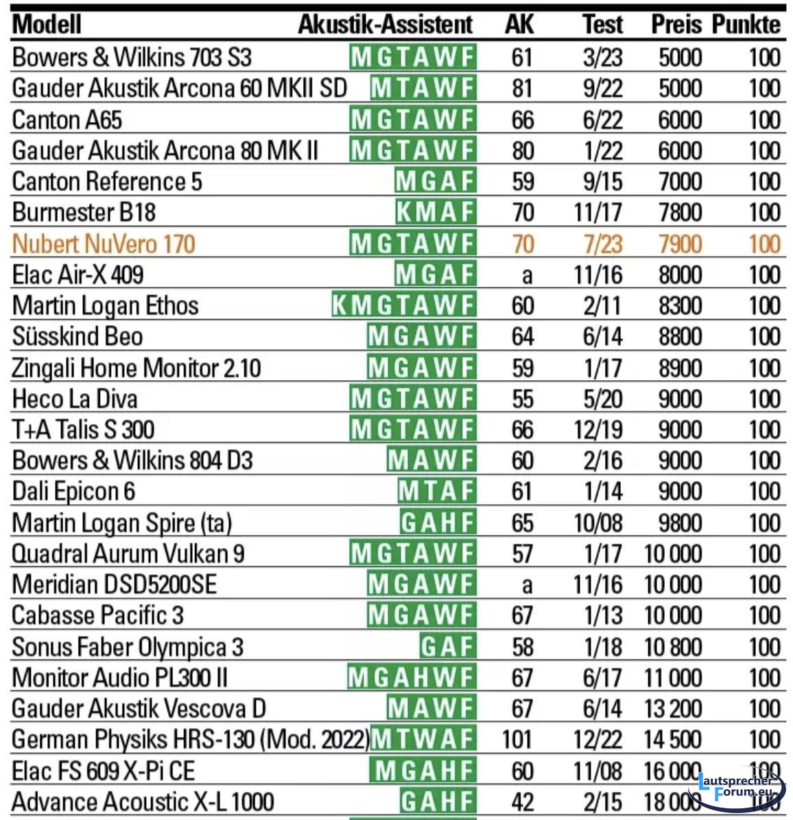 Wenn ich nach der Zeitschrift Audio gehe, wurde die Nuvero 170 mit 100 Punkte bewertet.