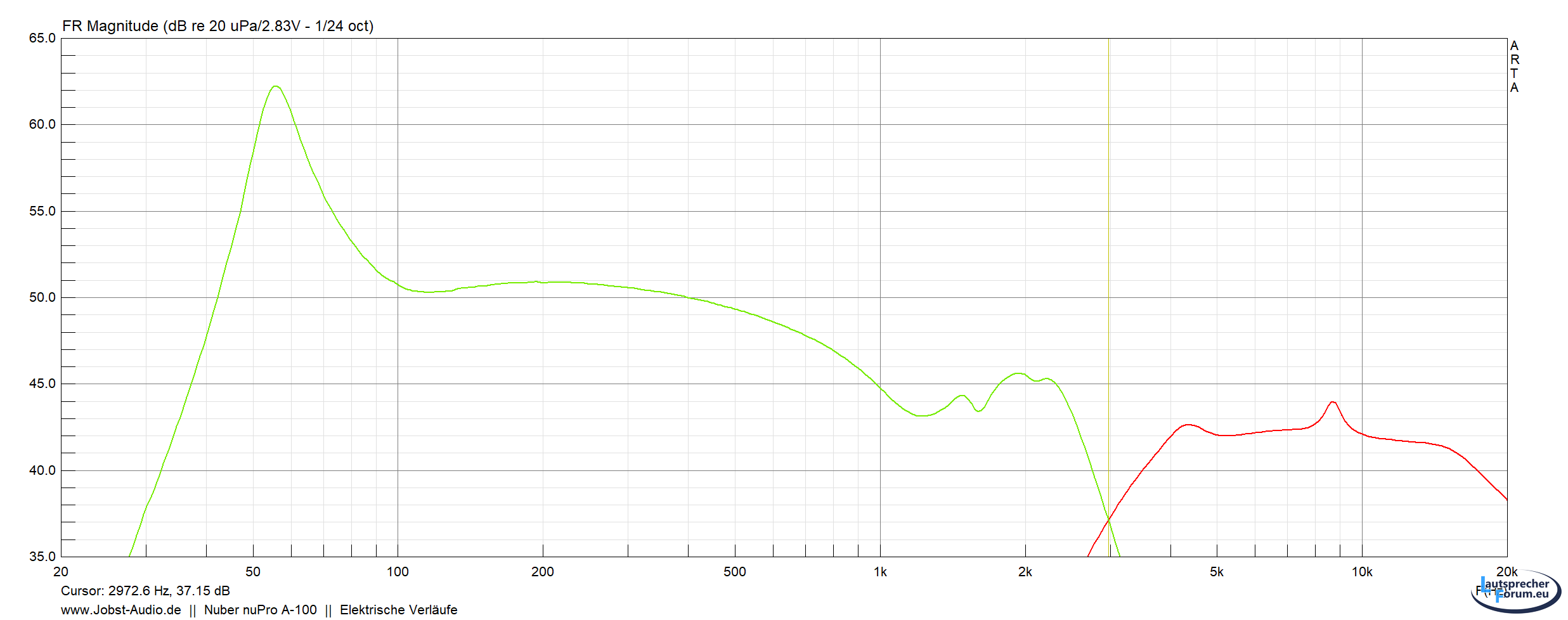 Die akustische Trennfrequenz liegt bei recht genau 2,7kHz,