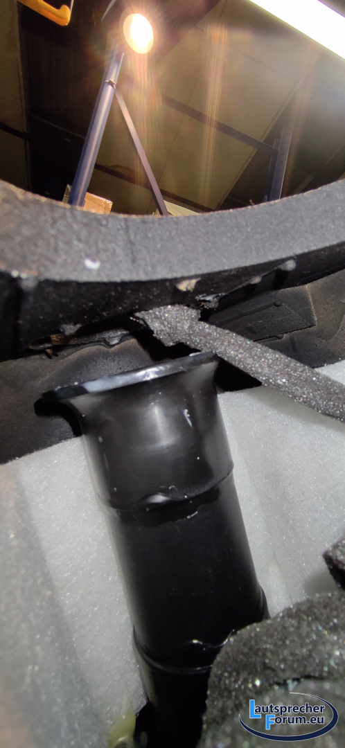 Rückseitig finden wir den BR-Port, welcher direkt bis hinter den Hochtöner reicht, hier sind nur wenige mm Platz.