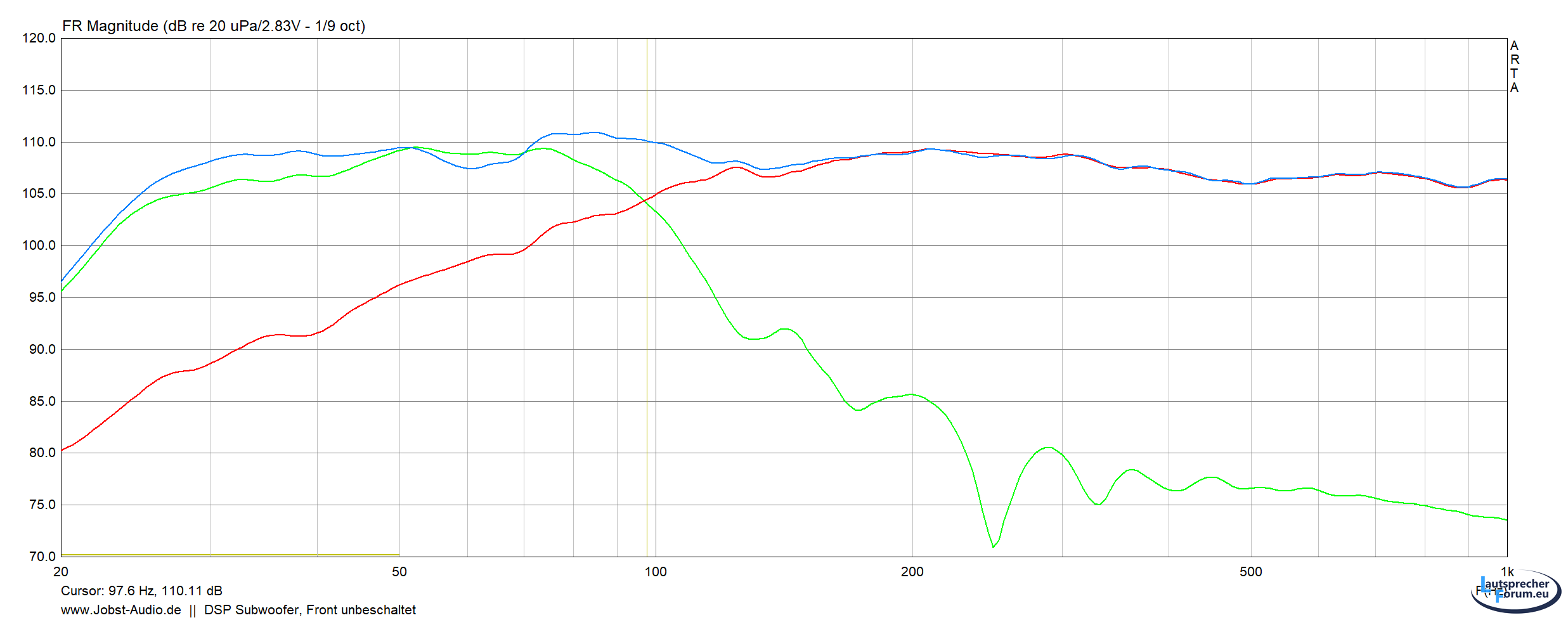 Hier mal ein Beispiel, 2 Subs -> bei 130Hz fast 9dB Differenz trotz gleichem Filter.