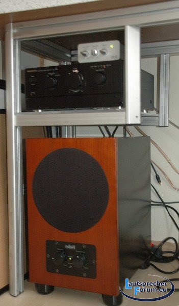 Hier mal ein Foto vom Verstärker mit dem ATM ( speziell für die DS-50) und dem Nubert Subwoofer AW-1.