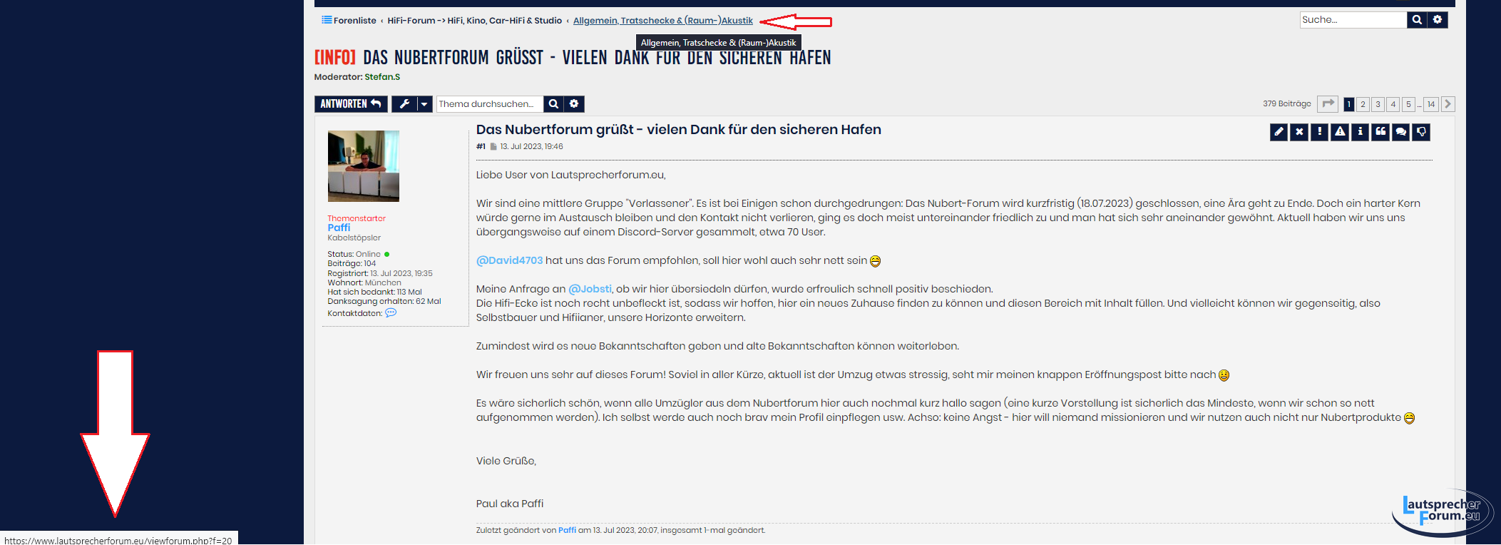 Nein. Das war ein Nutzer.mk_stgt hat geschrieben: ↑3. Aug 2023 08:33vl haben sie selbst drauf verwiesen?Don Kuleone hat geschrieben: ↑2. Aug 2023 19:15Das dort auf hier verwiesen wird konnte Nubert sich nicht aussuchen denke ich.