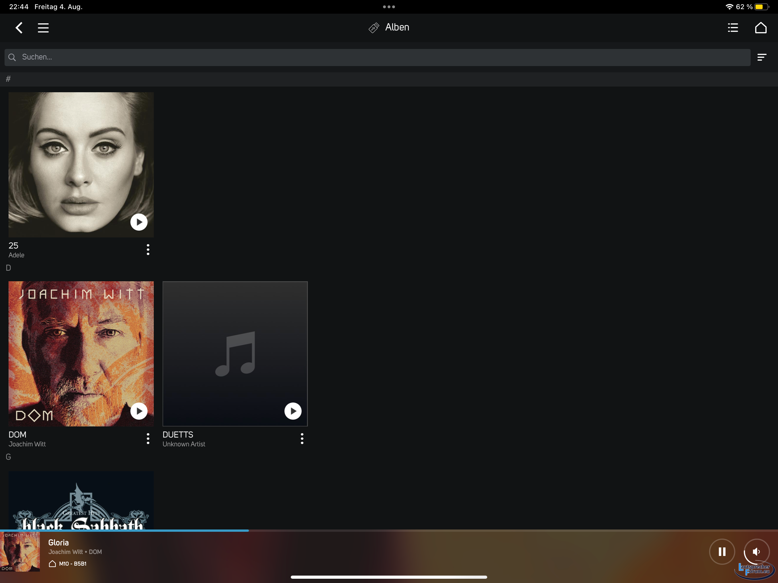 Hab‘s gerade noch einmal ausprobiert - eine WD-Festplatte über USB-Eingang wird erkannt, die Alben werden erkannt, die Titel werden erkannt…hier die Albenansicht, in der Titelansicht sind einfach nur alle Titel untereinander angezeigt