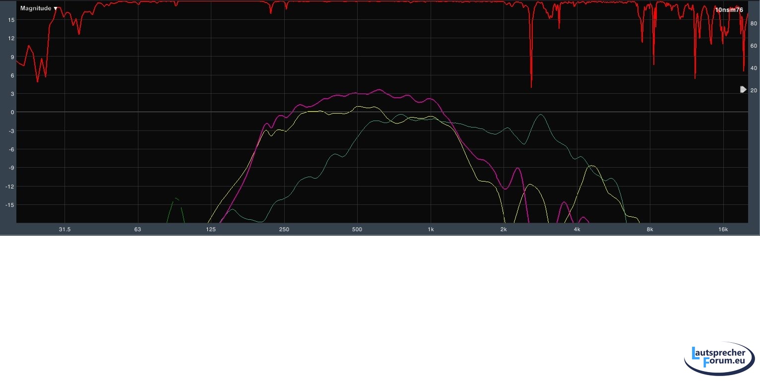 Mitteltöner wird jetzt vorerst der JBL bleiben, bis das zu Ende ausprobiert ist. Impedanzmessung vom NSM am Horn mache ich gleich mal.
