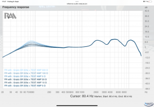 Im RAA Project kann man alle erdenklichen Geräte und Hörer prüfen. Leider gibt es dort nur den Grado 325e, der aber ein ähnliche Impedanz zu Deinem Hörer zu haben scheint: