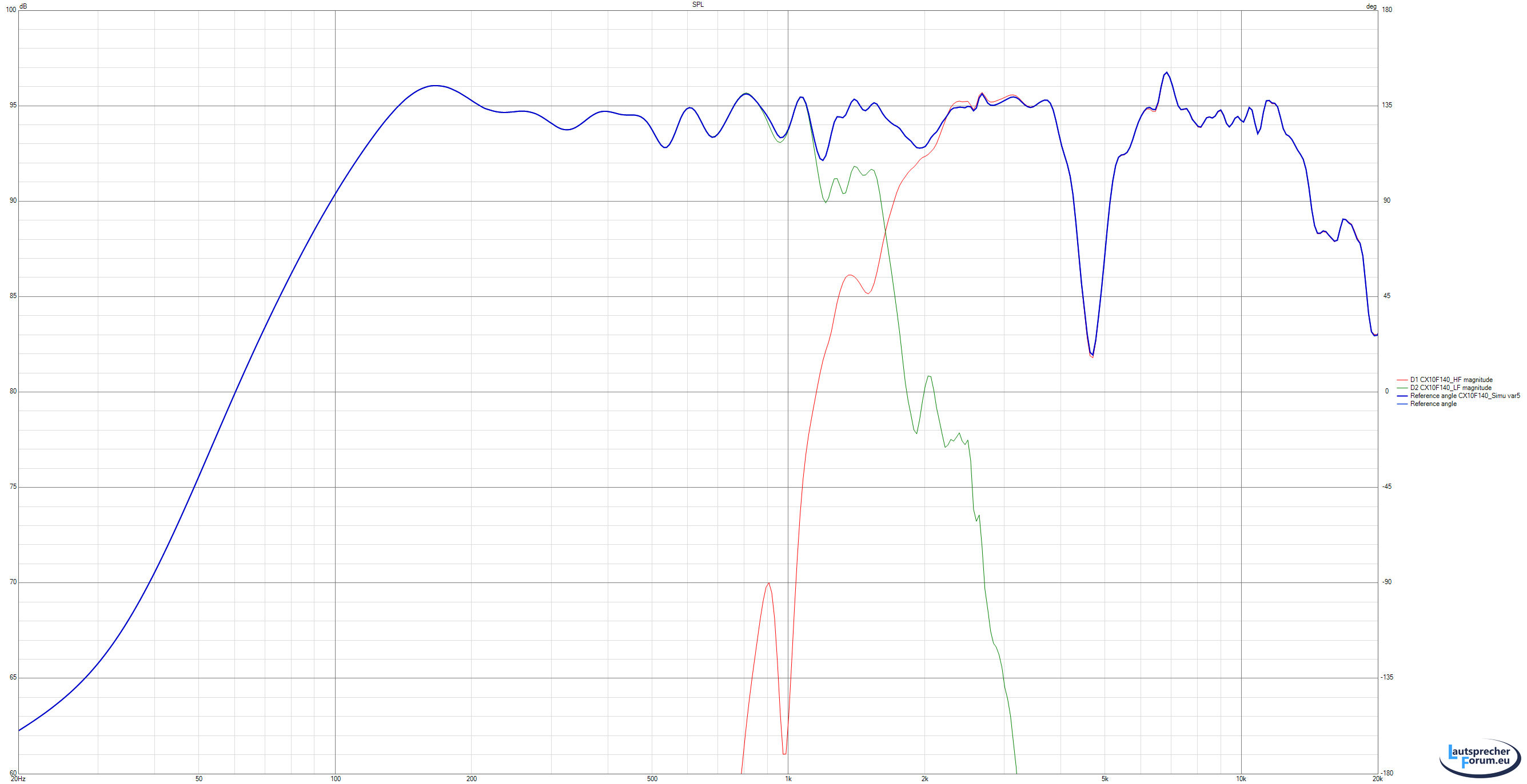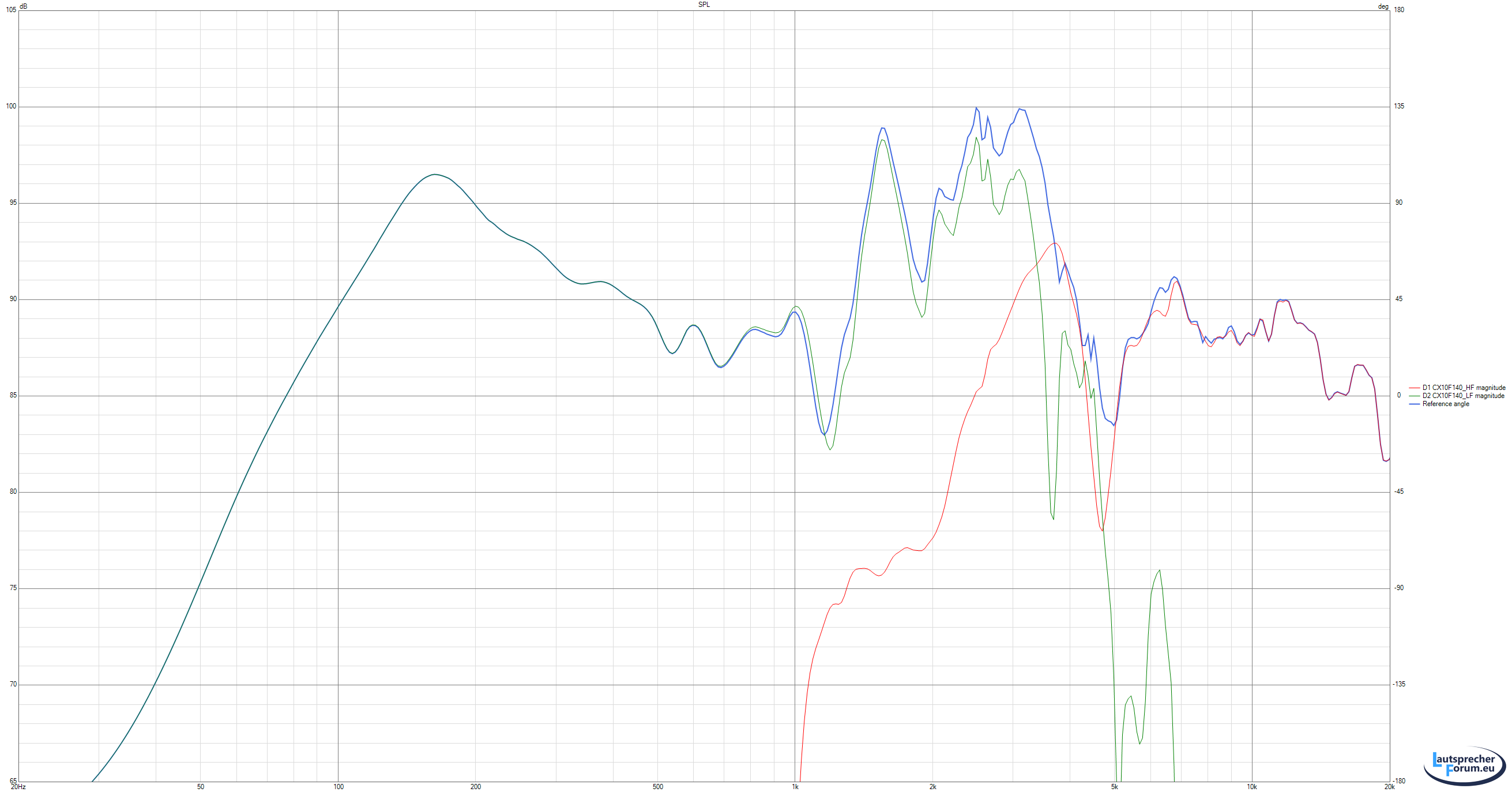 Der Hochtöner ist hier auch bei ca 1600Hz akustisch angekoppelt, fällt aber viel flacher ab,