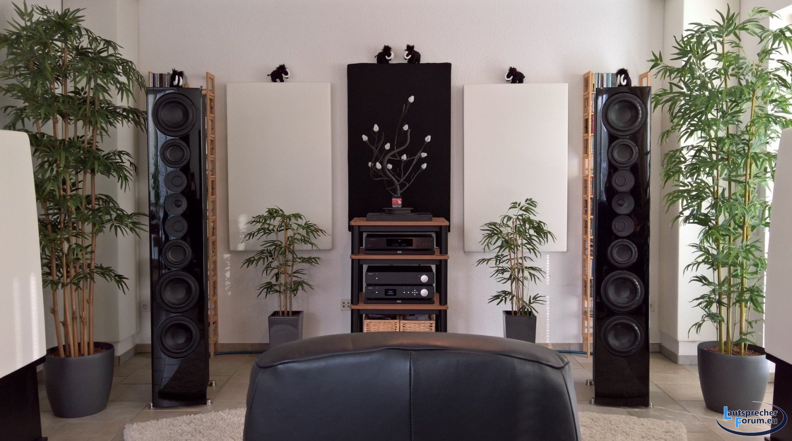 Später habe ich die AW-1000 in der Front auf eine Linie gestellt und letztes Jahr kamen die Gauder Arcona 100 MK II hinzu. Diese ermöglichen durch geringere Bauhöhe eine bessere Sicht aus den Fenstern des Wohnwintergartens. Die Mitten und Höhen der Arcona klingen in meinen Ohren sehr detailliert und fein. Sie bauen eine wunderbare Bühne in Höhe und Breite auf, welche mit derjenigen der nuVero 170 vergleichbar ist.