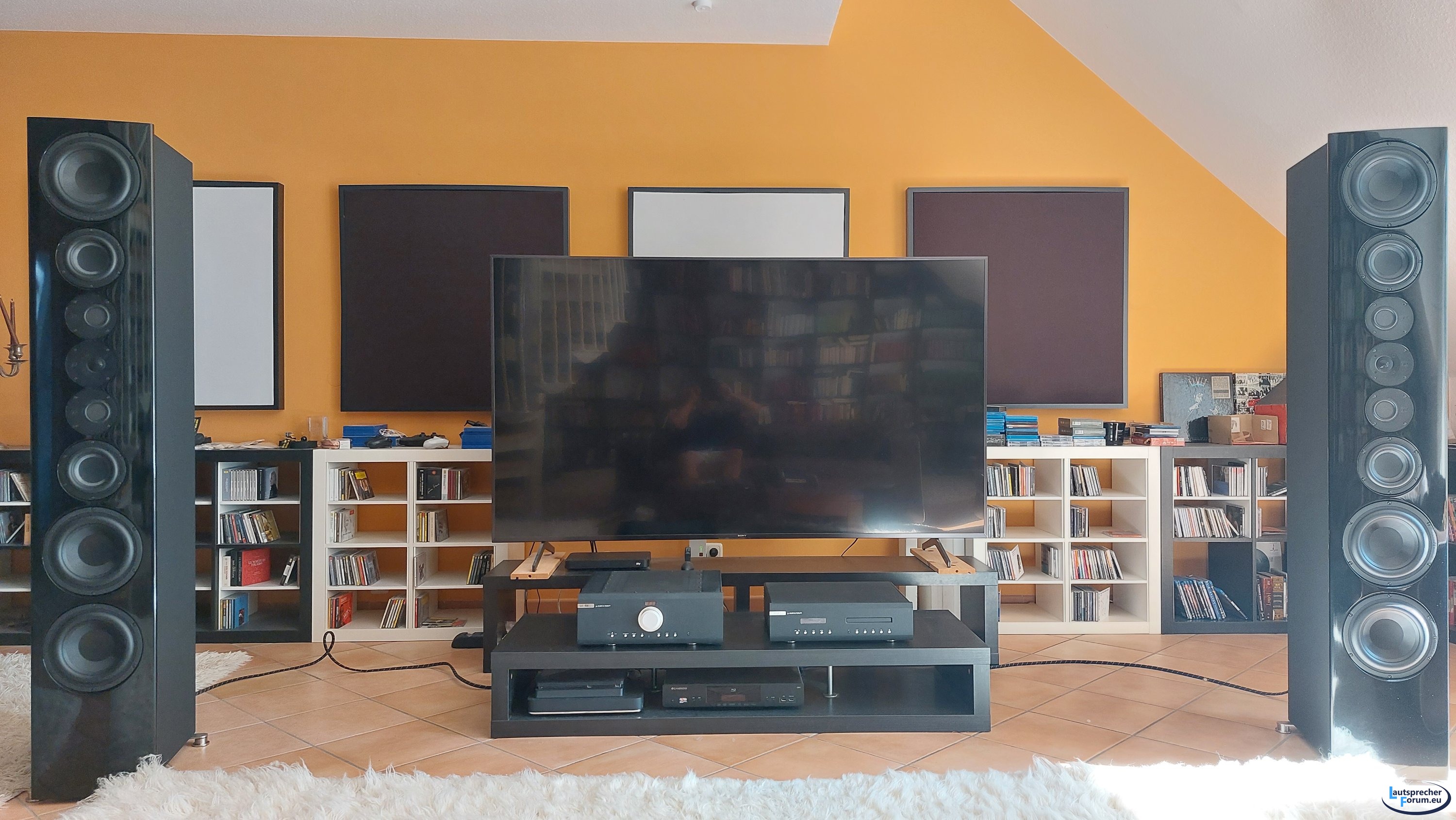 sehr gut gefällt mir, dass der TV weit hinter der Lautsprecherfront steht, ein großer Bildschirm zwischen den LS ist sonst imho so gut wie immer einer der möglichen Killer für saubere Abbildung, congrats ... :top: