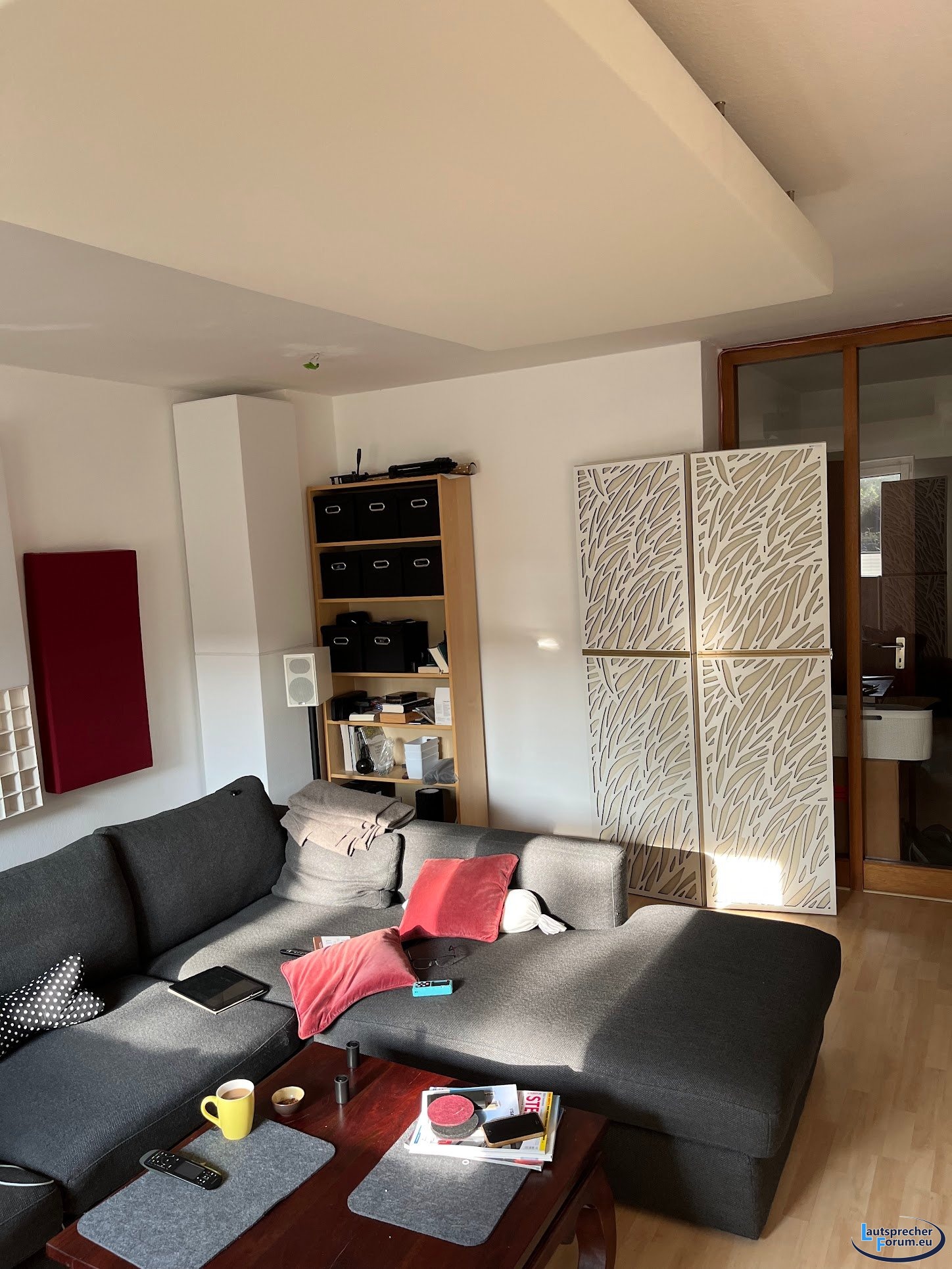 Außerdem hab ich Boxen noch etwas vorgezogen und Sofa noch etwas weiter in die Mitte. Mal sehen wie sich das macht.