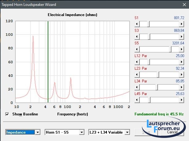 und jetzt noch mal zum F3-Punkt. In einem Tapped Horn ist es eine absolute Seltenheit, dass sich die Abstimmung Fb perfekt mit dem F3-Punkt deckt. Auch bei diesem Konstrukt ist es genau so.