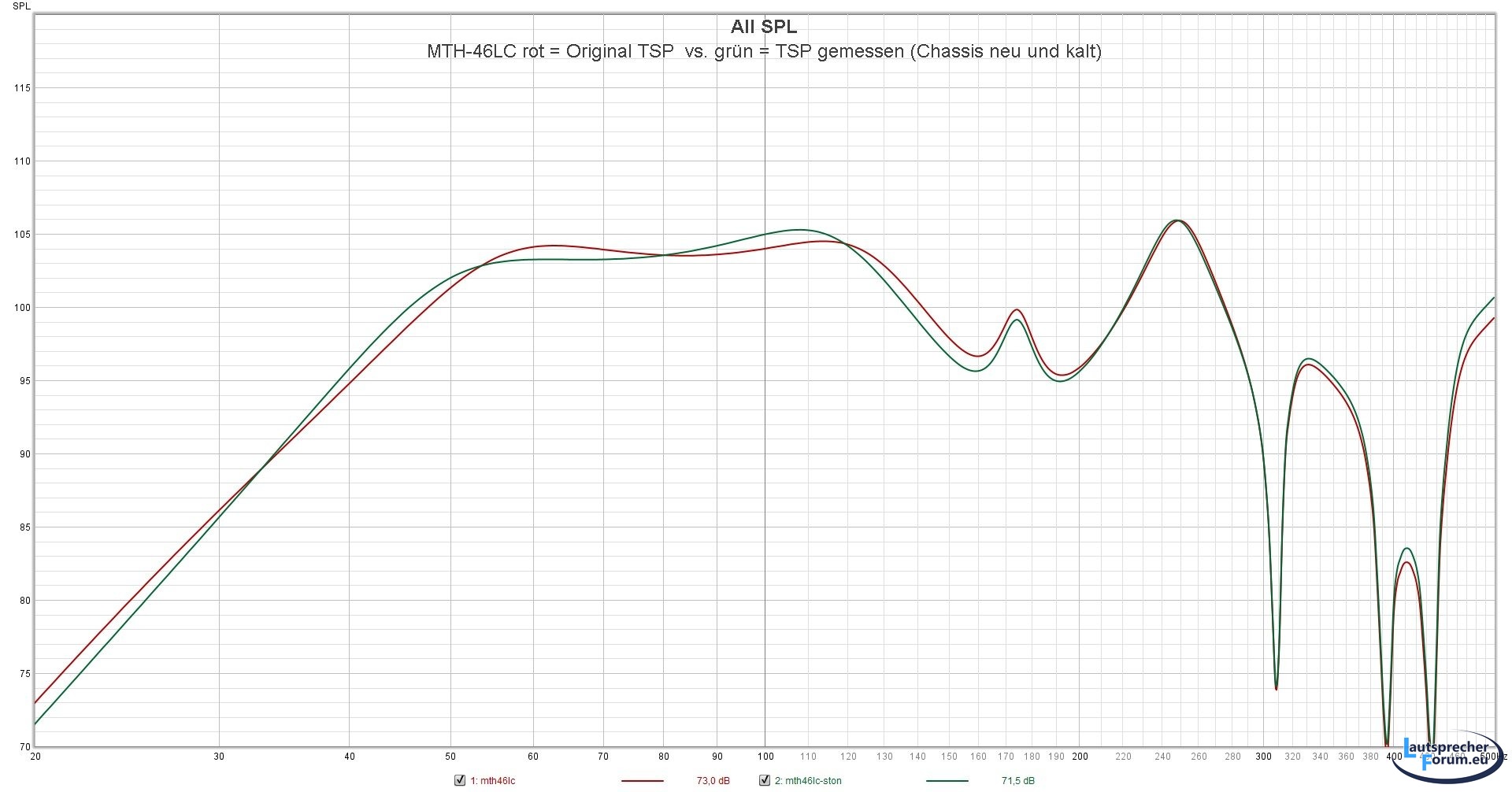 Wie man hier bereits sieht, geht der MTH-46LC deutlich tiefer, aber auch vom Wirkungsgrad leiser. Eben so, wie ich vorhin gesagt habe.